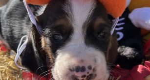 Our puppies are black white and tan. Colors will vary depending on the parent dogs.