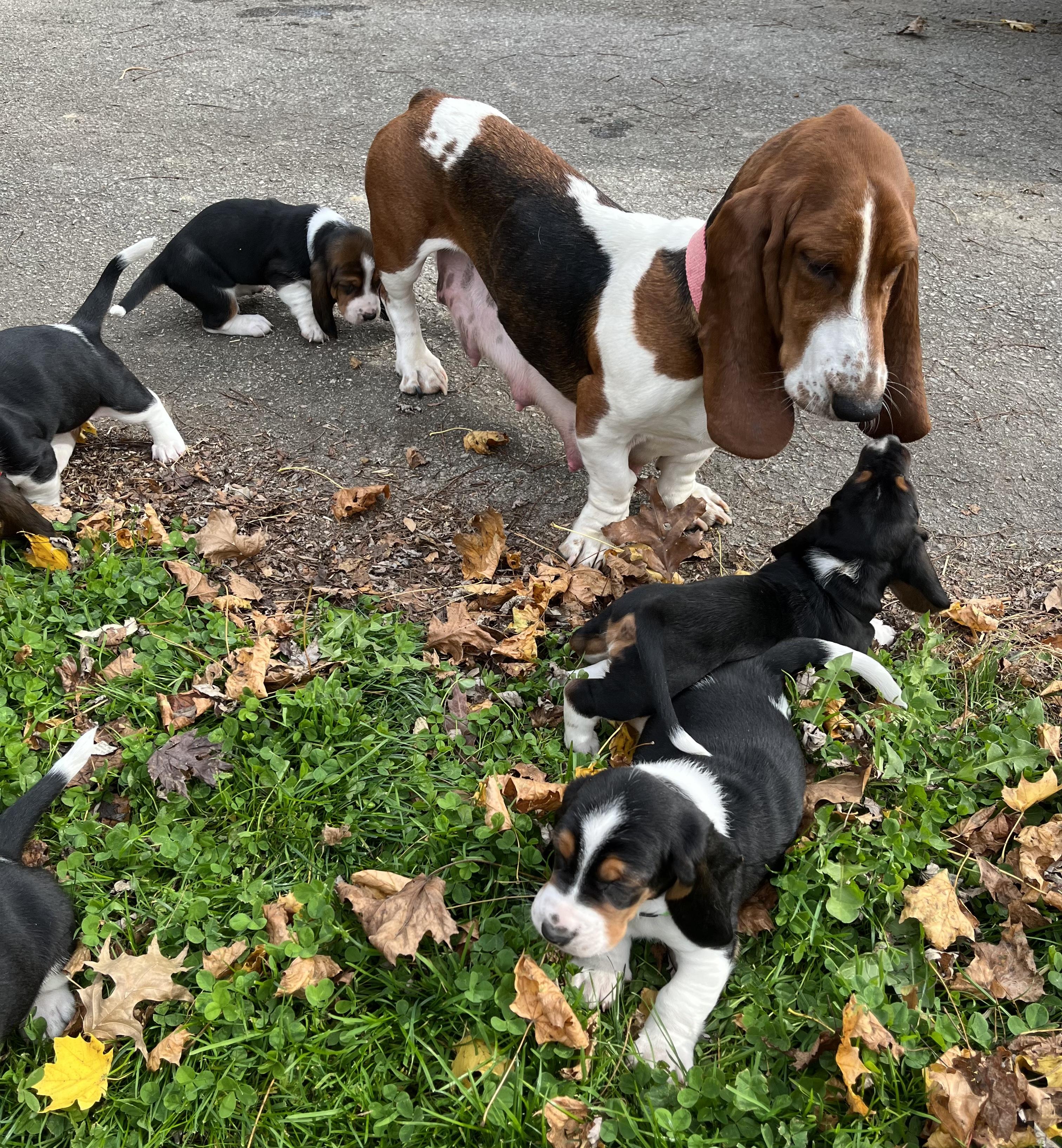 I'm Keith G., the breeder behind Brookside Bassets located in Homer City, PA. We understand the responsibility of purposefully breeding in order to do better for the breed and the families that love them! Chloe and Brutus are raised on our family farm where they accompany me on my daily routine. They are well socialized to other animals. Brutus and Chloe greet new people almost every day with happy faces and wagging tails! They have easy laid back temperaments.