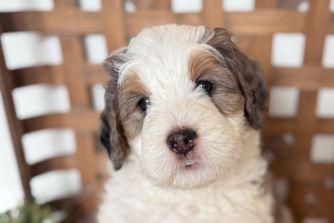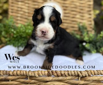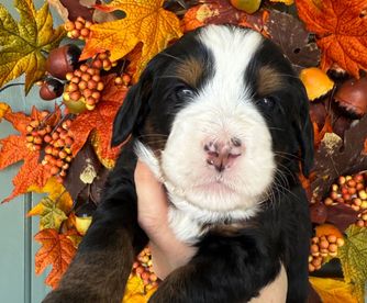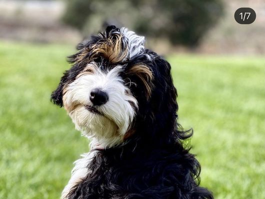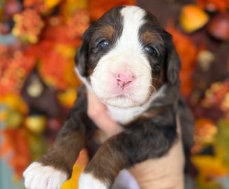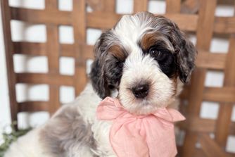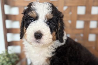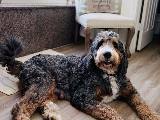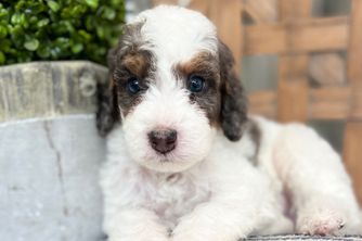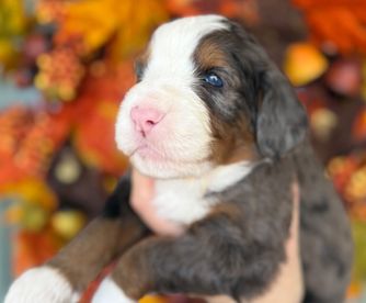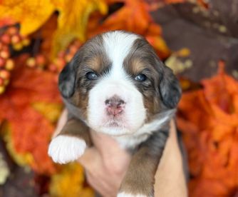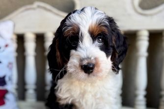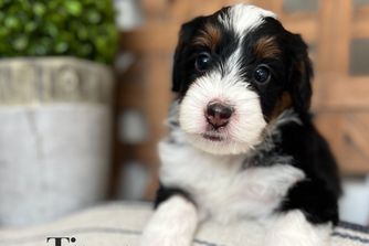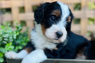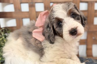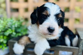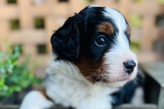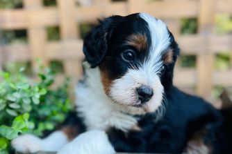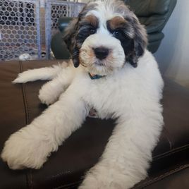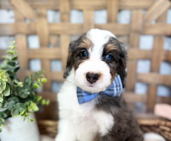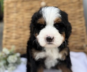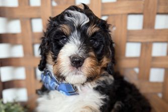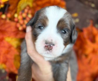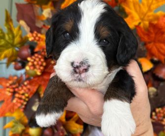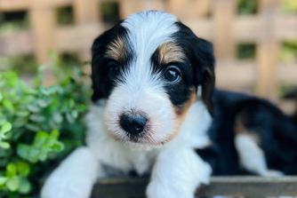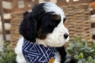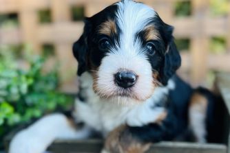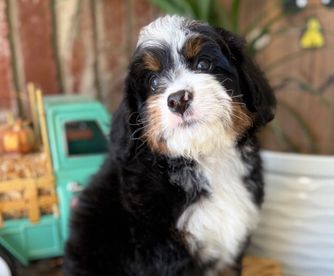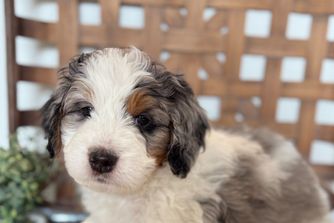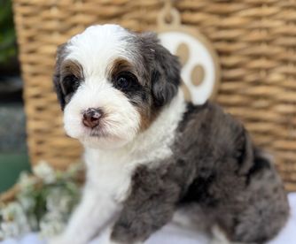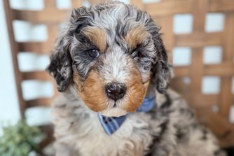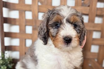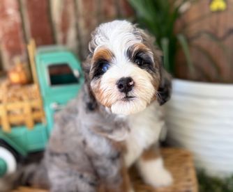 Our Bernedoodle puppies include red, tri-color, phantom, and blue merle. Colors will vary depending on the parent dogs.