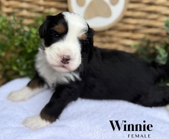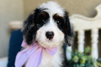 Our Bernedoodle puppies include mini, medium, and standard sizes. Sizes will vary depending on the parent dogs.