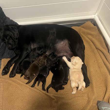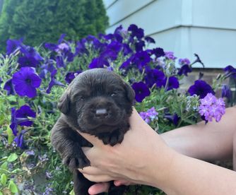 Our puppies include black, chocolate, and yellow. Colors will vary depending on the parent dogs.