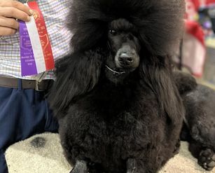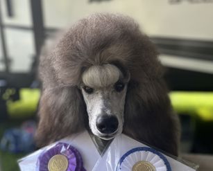 Desi is a wonderful girl who is very smart, a calm and gentle dog. She enjoys snuggling with her people and loves food! Desi has completed her AKC Championship and has passed all her health testing recommended by the Poodle Club of America