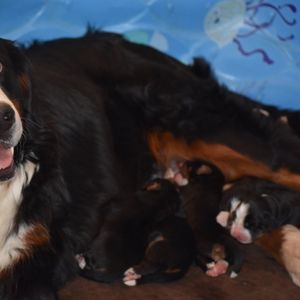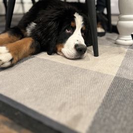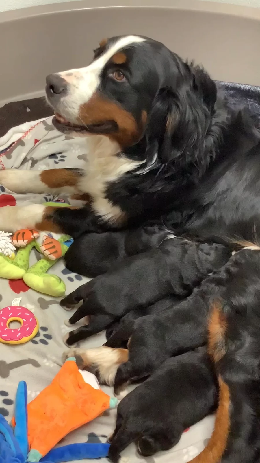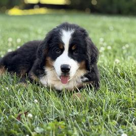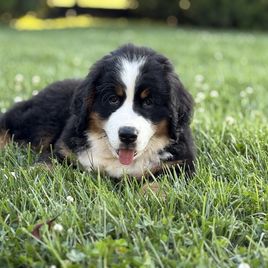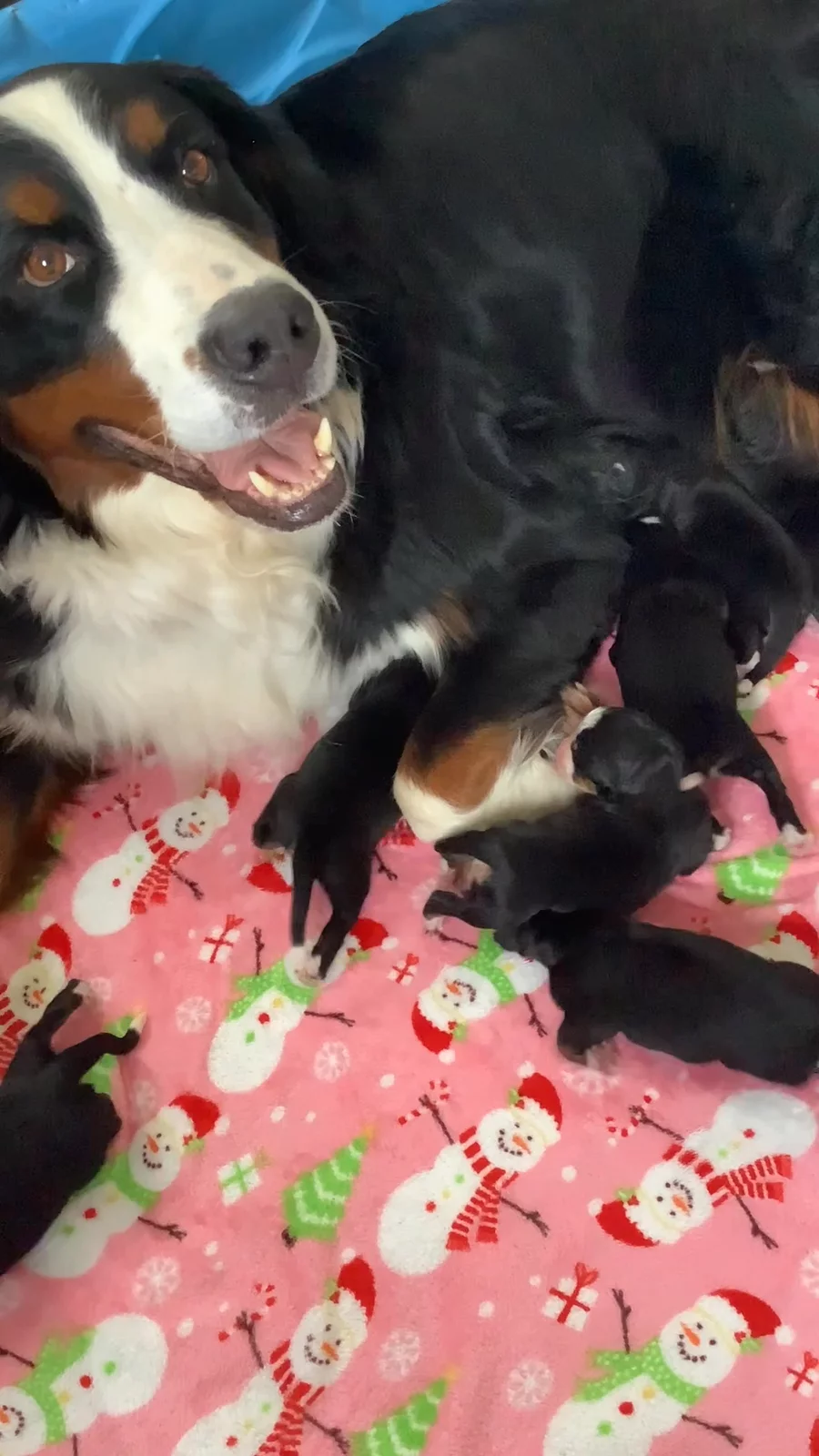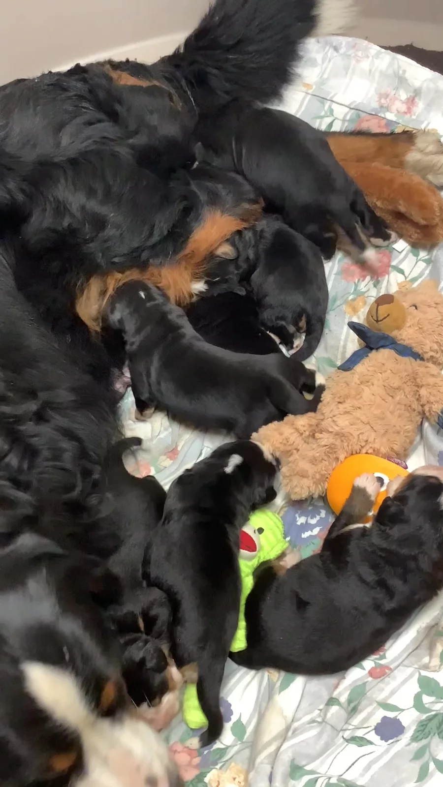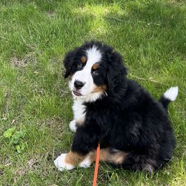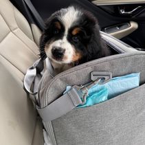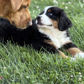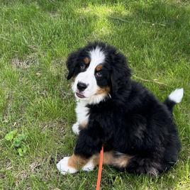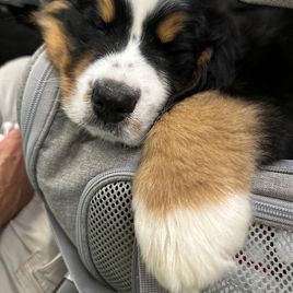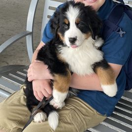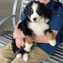We couldn't be happier with our new Bernese Mountain Dog puppy from Chloe and Moose's litter! We brought her home last Saturday, and she's already settled in beautifully after just a couple of days. She's incredibly sweet, loves meeting new people, and is always eager to greet other dogs. We're also amazed that loud noises, even the vacuum cleaner, don't faze her one bit – she's a very confident little pup! Connie and Katie were absolutely wonderful throughout the entire process, providing helpful guidance at every step.