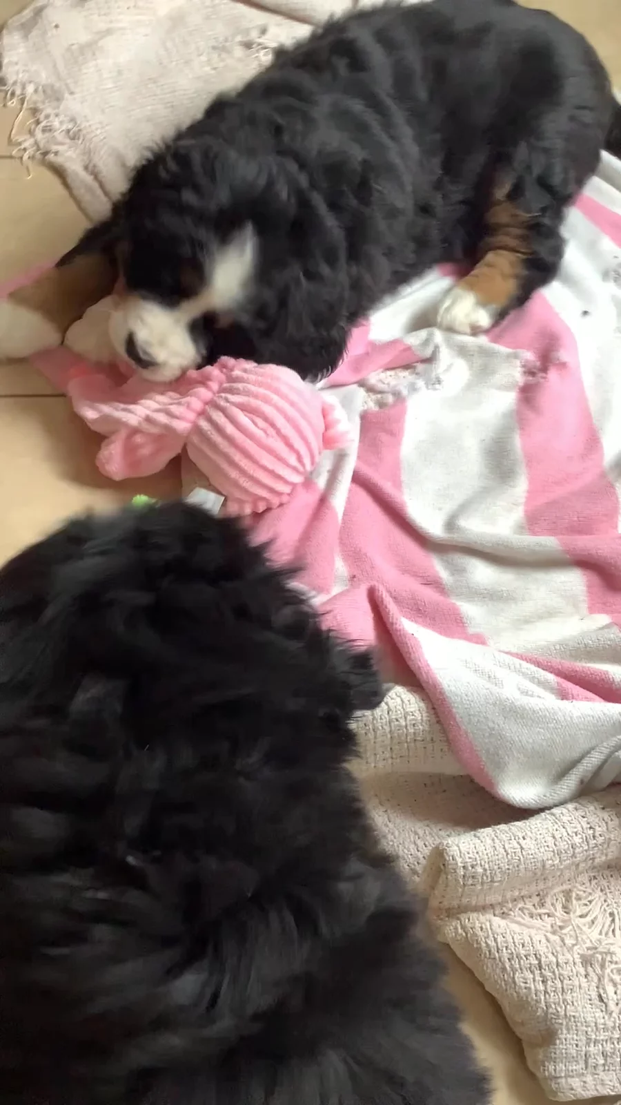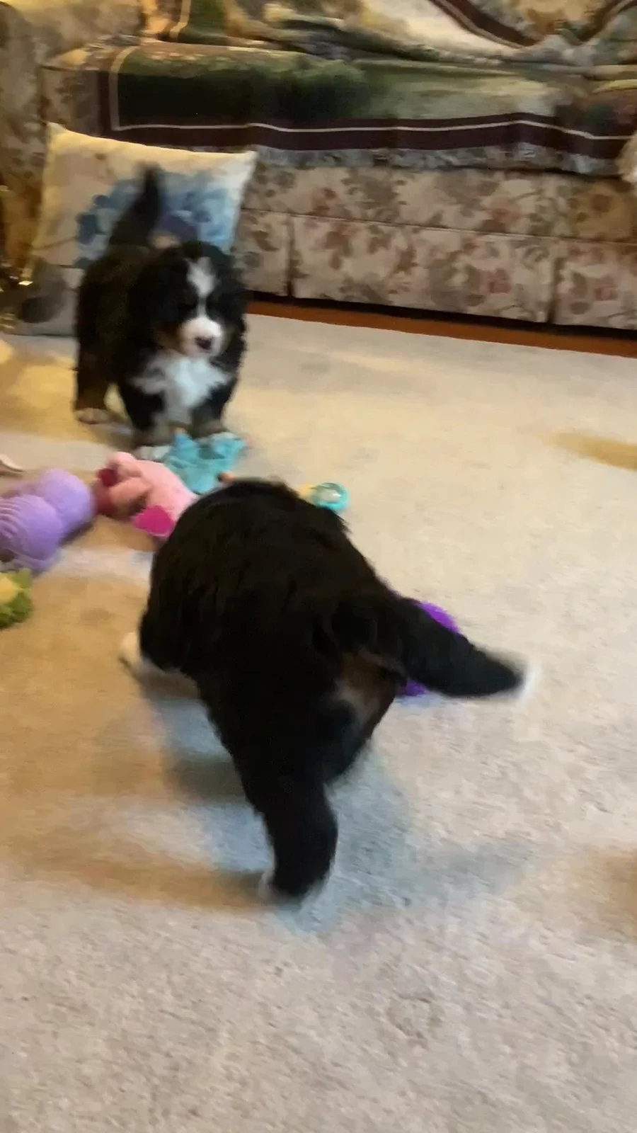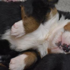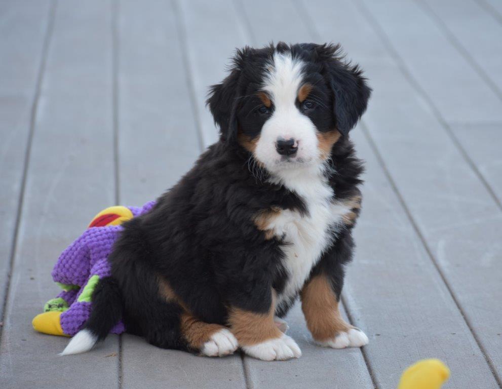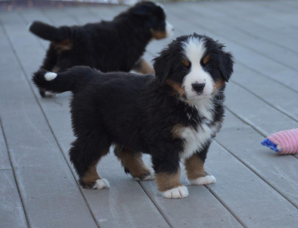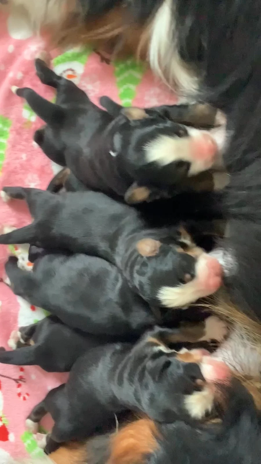 We couldn't be happier with our new Bernese Mountain Dog puppy from Chloe and Moose's litter! We brought her home last Saturday, and she's already settled in beautifully after just a couple of days. She's incredibly sweet, loves meeting new people, and is always eager to greet other dogs. We're also amazed that loud noises, even the vacuum cleaner, don't faze her one bit – she's a very confident little pup! Connie and Katie were absolutely wonderful throughout the entire process, providing helpful guidance at every step.