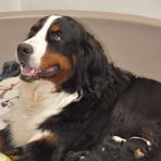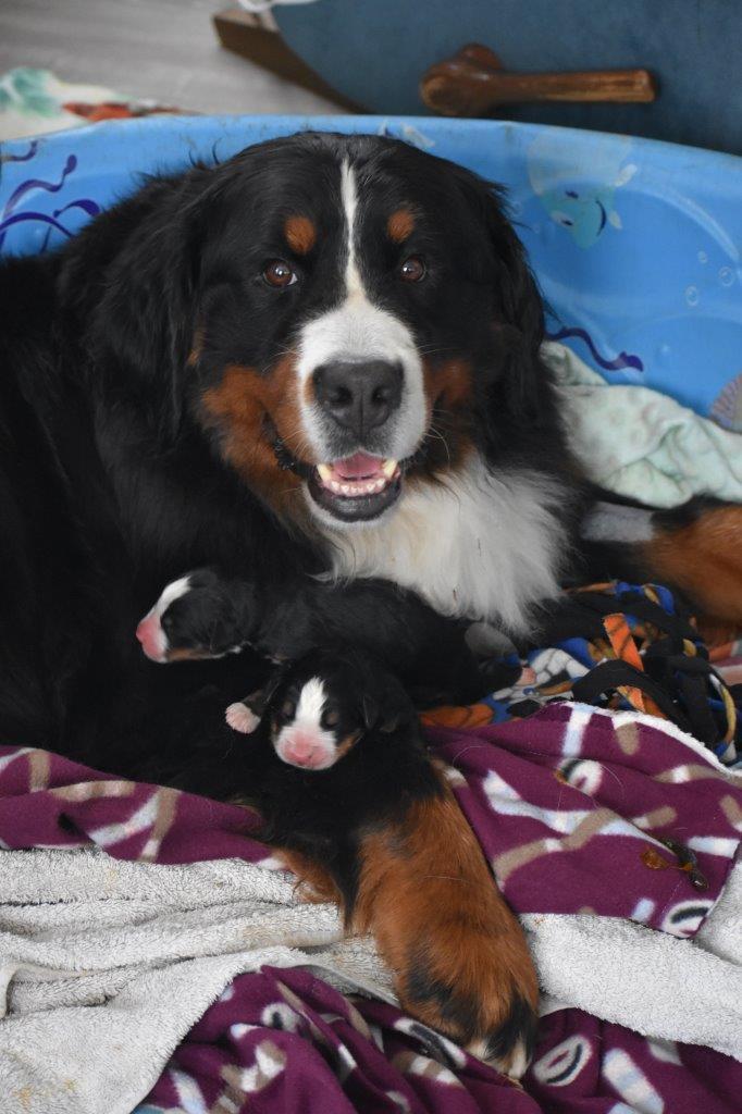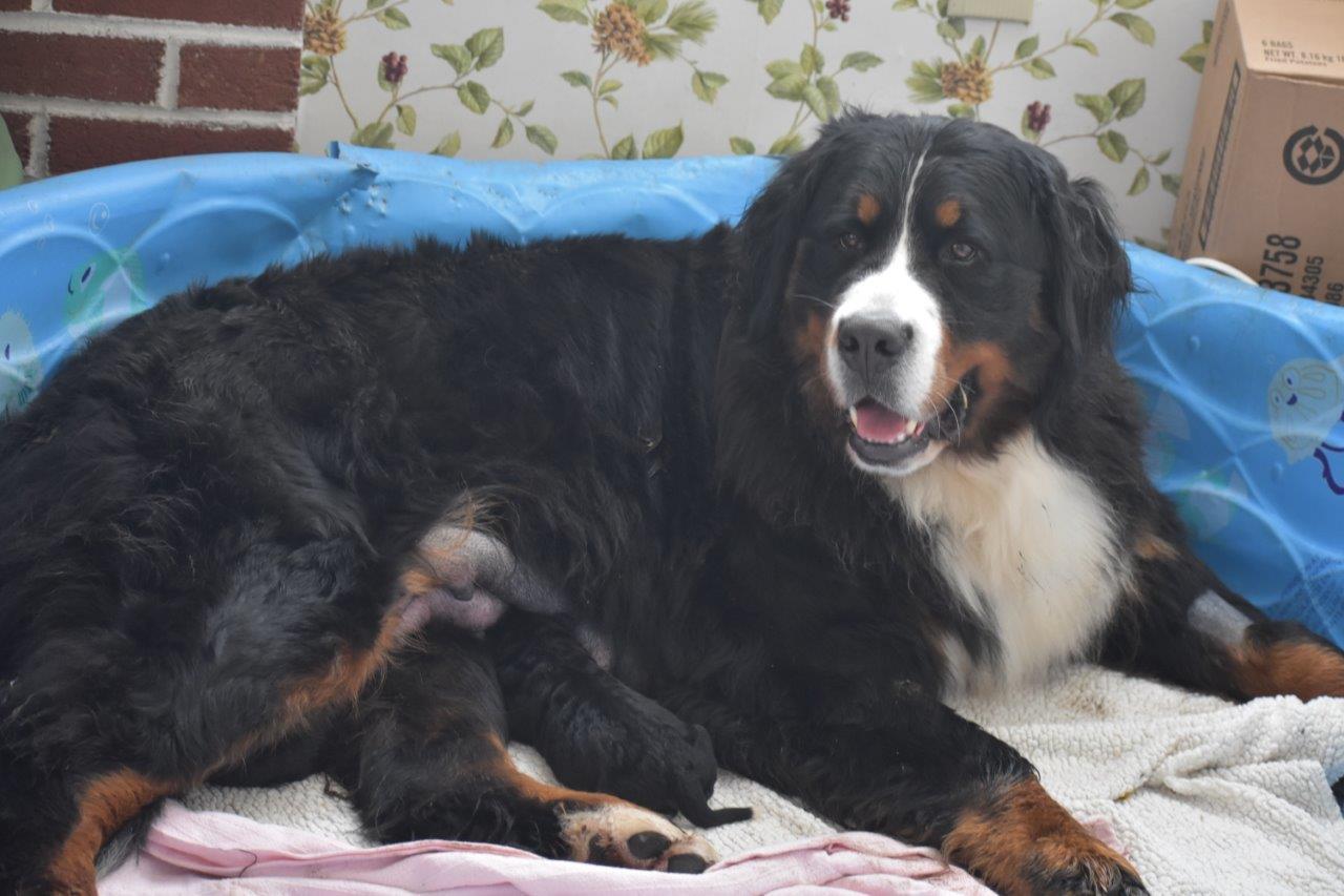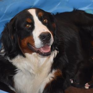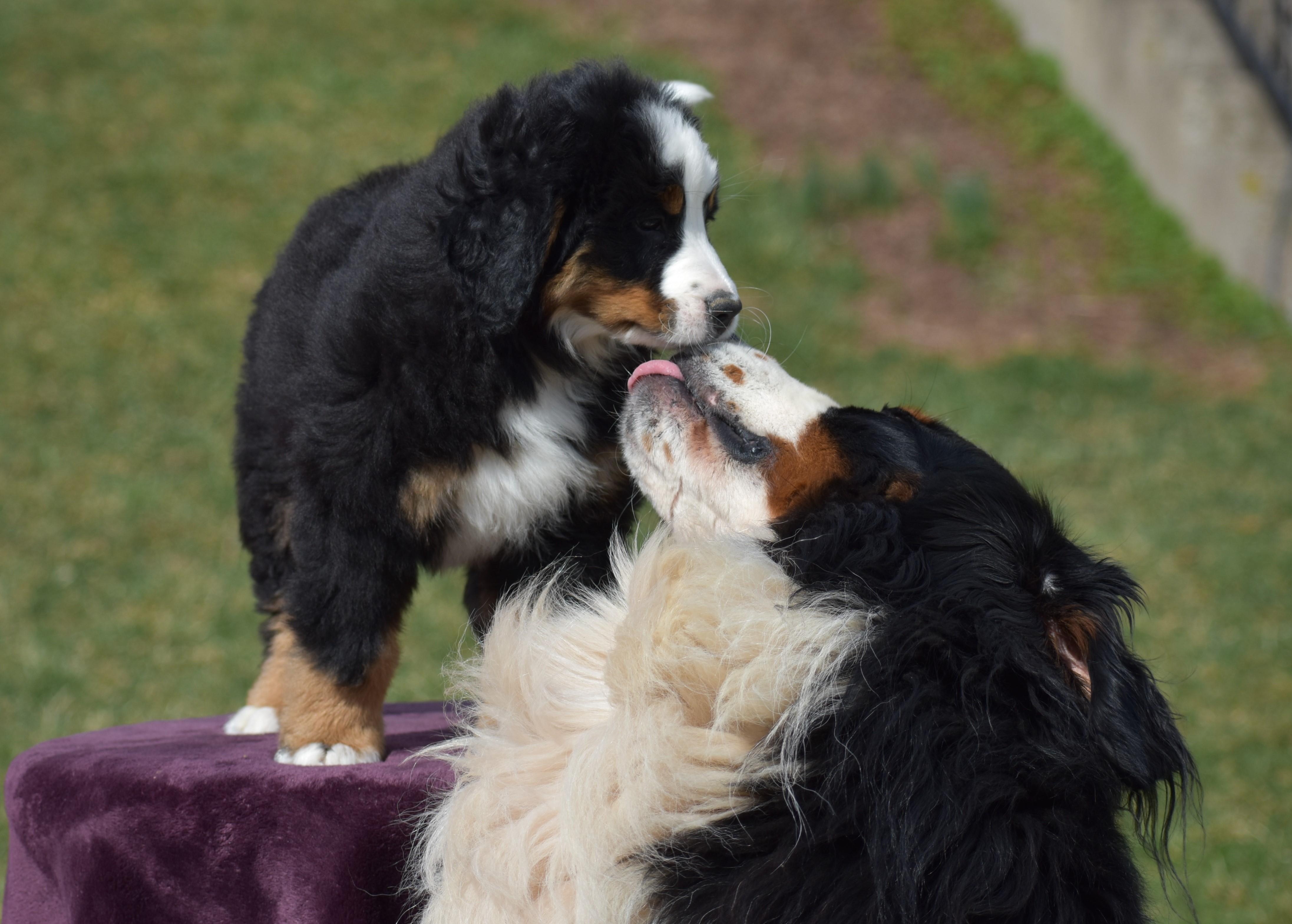 Our dogs are so loved, they are very special to us. They are also very attached to us and are expressive of their emotions, as well as being sensitive to our emotions too. Our pups are highly socialized and training begins early, actually before birth. Our socialization includes lots of music, other sounds such as a vacuum sweeper and engine, car rides, introduction to a crate and leash, and potty training awareness. We are eager to offer you support the entire life of your Bernese and want to be well informed of its health and behavior and accomplishments as he or she matures.