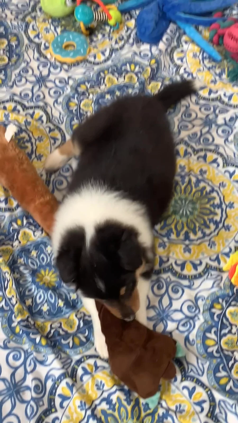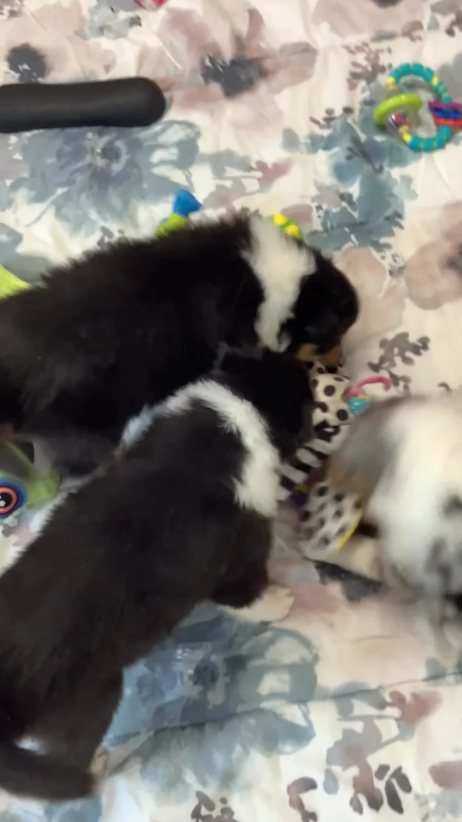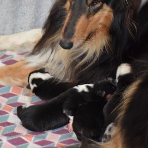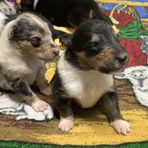 Our puppies include sable merle and white, sable and white, blue merle white and tan, black white and tan, and white. Colors will vary depending on the parent dogs.