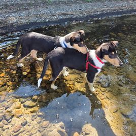 Sometimes you learn a lot about yourself when making a big life decision (a puppy is certainly a big life decision). I learned I was not the easiest person to deal with - I asked a lot of questions etc..... Katie was awesome - she coddled me and helped me through the process. She answered all my silly questions and all my important questions. We ended up adopting two pups - a male and a female, both smooth tri-colors. We have had them a little over a month now and couldn't be happier. Both pups are smart and have great temperaments. Its been pure joy watching and interacting with them. There have been additional questions since the adoption and Katie has been there to help with encouragement and recommendations. A super experience so far :-)