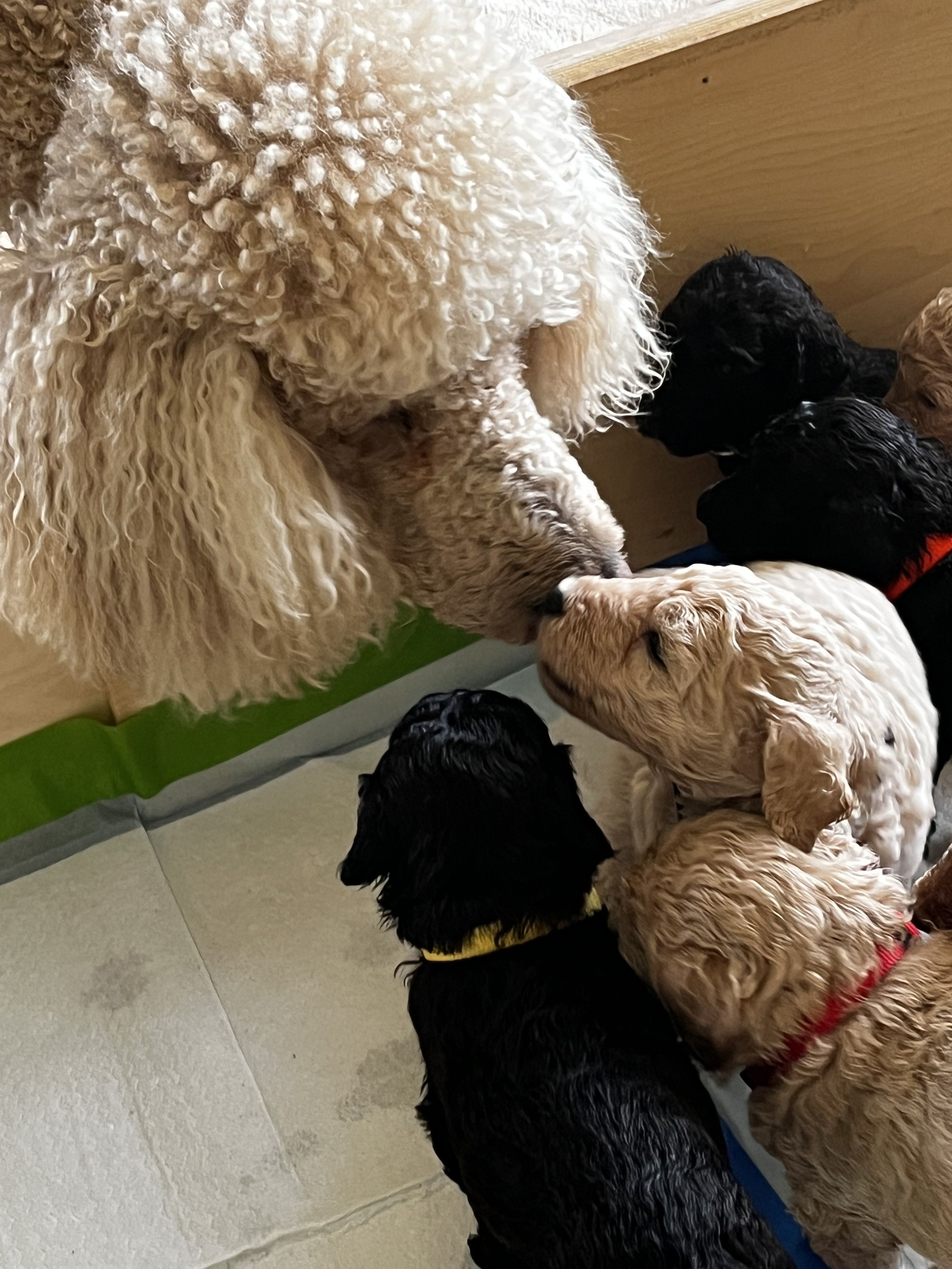 Ory and Lisa are amazing! I just got my good girl, Esther, from them, and I could not be happier. The poodles they breed have an amazing temperament. Esther, almost 7 months old now, is extremely gentle, kind, and perceptive. She is so cuddly and I would expect the other puppies from Rosie and Brooks would be as well. They helped board Esther for months while I could not take her home right away and took the absolute best care of her. They treat their dogs with respect and love - like family - and it clearly shows. If you're looking for high quality and good tempered poodles these folks are it! I highly recommend Brosie Nine Standard Poodles!