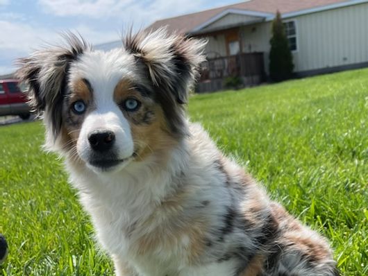 Our Australian Shepherd puppies include black, red merle, blue merle, and red. Miniature Australian Shepherd puppies include blue merle, red merle, red, and black. Colors will vary depending on the parent dogs.