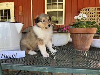Our puppies are sable and white. Colors will vary depending on the parent dogs.
