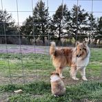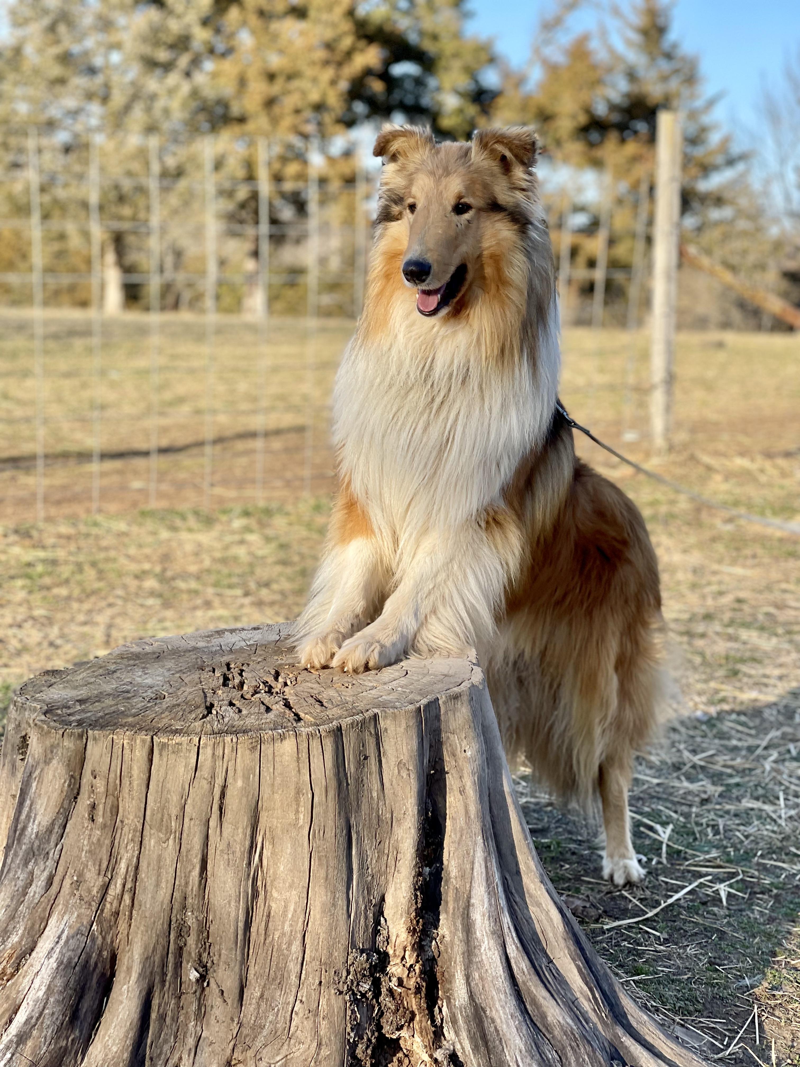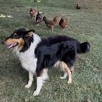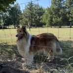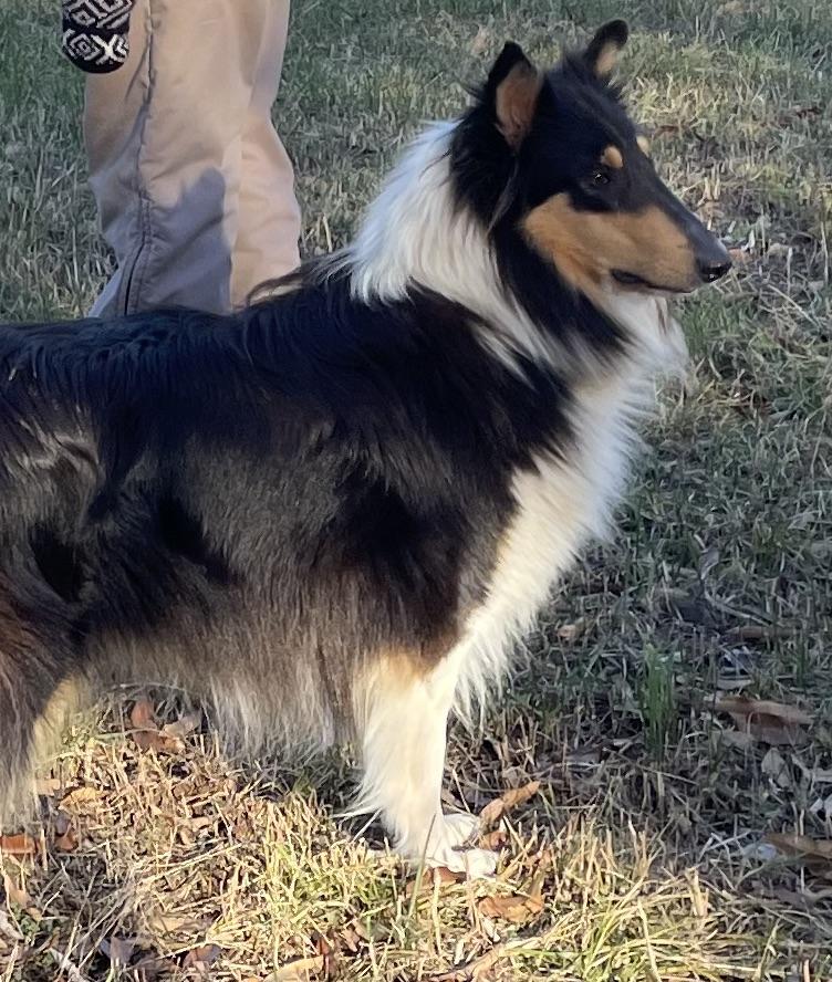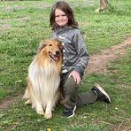 Katie is calm and predictable, never pushy, always a lady. Gentle with children and greets newcomers with a Collie smile. Her coat has reddish tinges.