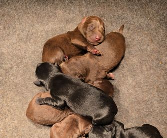 Our puppies include black and chocolate. Colors will vary depending on the parent dogs.