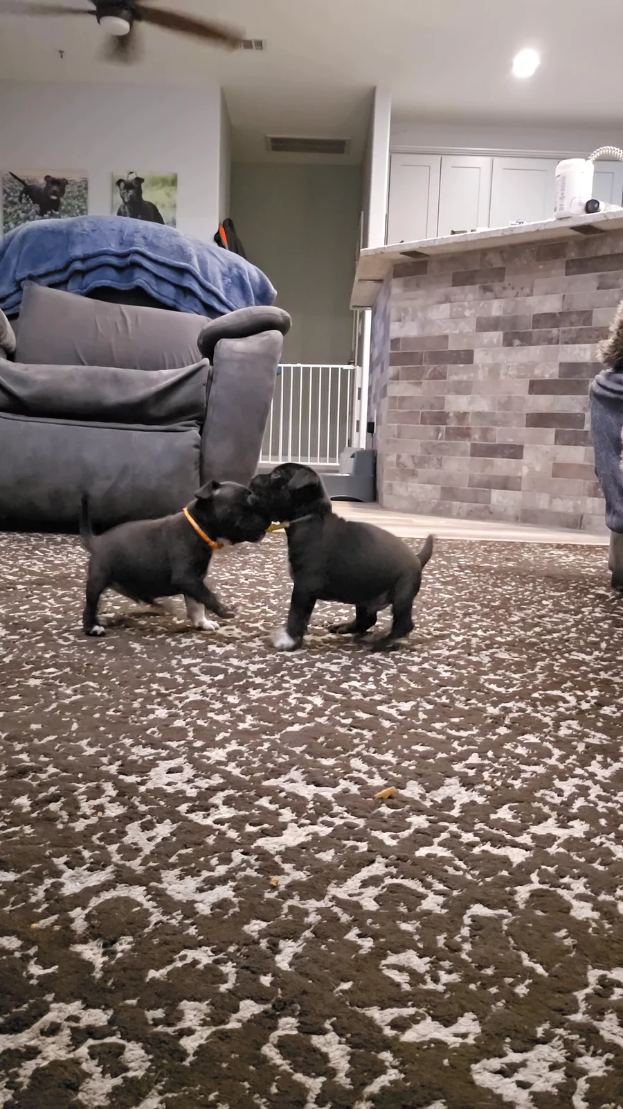 I began my research for a reputable breeder around March this year. I had communications with several in texas and some out of state but with each one they seemed to really be pushy on social media and my instincts told me to keep looking. I happened upon Bruhaus Kennels via the AKC search page and started communications with May Burhans early April. I’m a native Texan and when I saw she was in Georgetown and the timing of seeing her post for future litter, I was getting the feeling ‘it was meant to be’. She was the only person who acknowledged my loss/heartbreak with my furbaby Willow and that triggered me to continue emails/texts/phone call which led to the deposit and contract. I patiently waited, from the ‘idea’ of a litter, to confirmed pregnancy to birth and finally in person meeting, which was such a relief to put all the pieces together. It can be somewhat nerve racking to invest your time and hope via online communications but May promptly answered and texts/emails and kept me up to date during the whole process. (with no pushiness) They love their staffies, and not just in it for the breeding and $$. When you wait for your next soulmate for 6mths and try to trust your instincts that all is ‘real’ and on the ‘up n up’, it was such a relief to get confirmation, May&Trevor are honest and genuine humans! Our first meeting, I was in tears, as I walked in and saw the healthy litter, they were sitting in their playpen, quite as could be, just observing. May was so patient and let me meet ‘Sunna’ and all the little babies. They are all stunning! and anyone would be blessed to have one of their little souls to share their life with- I feel so blessed. I’ve had Luna-Rena for 3weeks now and she is complete joy to me. My heart and soul.