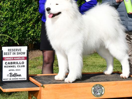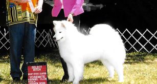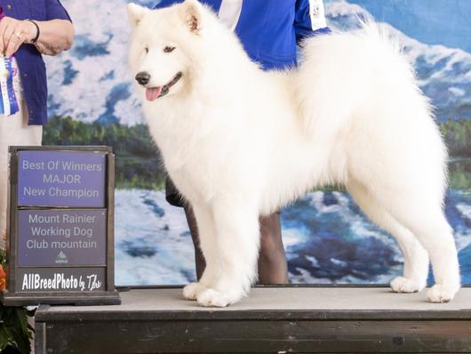 Tekkie is a doll...very sweet, very smart, great sense of humor, and a beautiful boy. He loves to hang out, or go and do whatever is on the agenda. He is a top winning Samoyed, competing in AKC conformations shows, and has earned his Grand Champion Silver level and National Owner Handled Gold level. Tekkie is a great dog to live with!