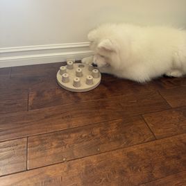 We are so thankful to the Good Dog app for hooking us up with Bruin Samoyeds. We were able to visit twice before we got our pup and was so impressed in how the breeder made sure our hands and feet were sanitized before see the pups and the mother. Nancy was so knowledgeable and was able to answer all of our questions and chose the perfect pup for our personality and lifestyle. We would recommend her to anyone looking for a samoyed. Thank you Nancy.