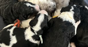 Our Bernedoodle puppies include medium and standard sizes. Goldendoodle puppies include miniature and medium sizes. Sizes will vary depending on the parent dogs.