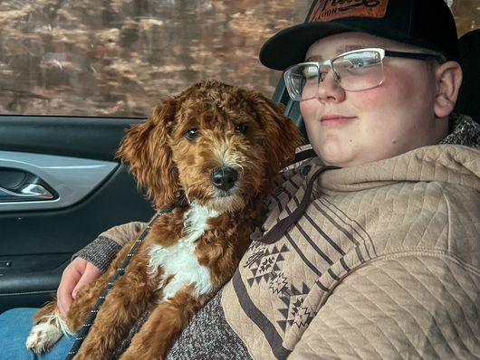 I'm Stevie B., the breeder behind Brunsman Country Doodles LLC located in Sunman, IN. All of our dogs are raised in home. Parents are Genetically tested. All of our breeder parents are calm, sweet dogs. We breed for temperament. We never breed dogs that are high energy. I’m very particular about temperament. A lot of our puppies go to families to be therapy, and service dogs.