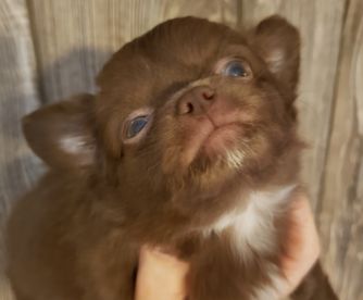 Our Chihuahua puppies include black, chocolate, cream, fawn, and chocolate and tan. Brussels Griffon puppies include wheaten, black and tan, red, black, and belge. Colors will vary depending on the parent dogs.