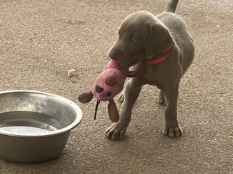 Holley is a female Weimaraner. Carefully selected as a great representative of her breed, Bryan decided to make her part of their program. Bryan has passed Good Dog’s screening process, which involved a review of their breeding practices, environment, and the mental and physical health of their dogs.