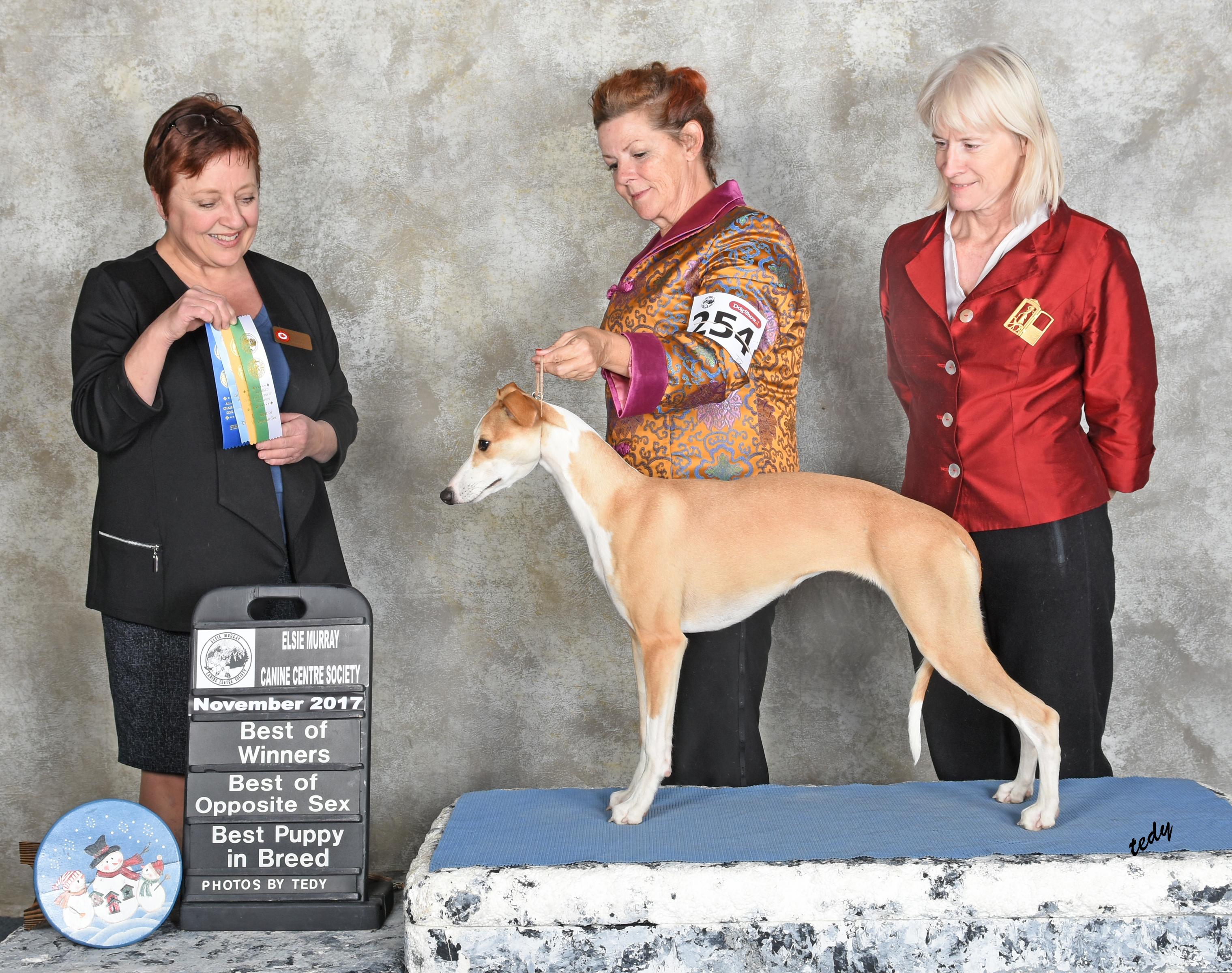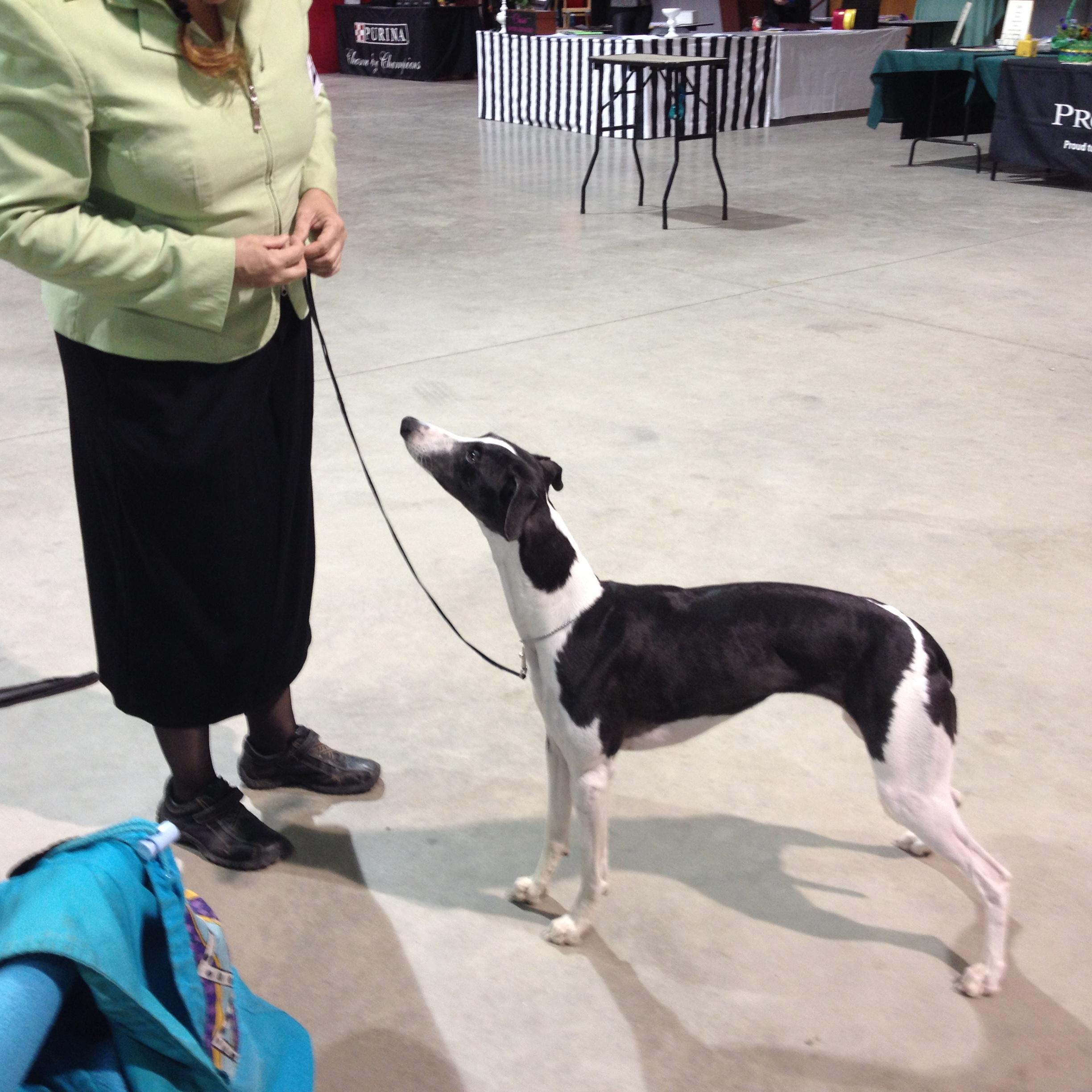 Indy is my first line bred whippet. His father was 1 point short of a dual champion title, an injury stopping him. He himself won the Open class at the American Whippet Club National AKC Lure Coursing, beating 85 other whippets and with his sister, having the highest scores of 120 dogs competing that day.