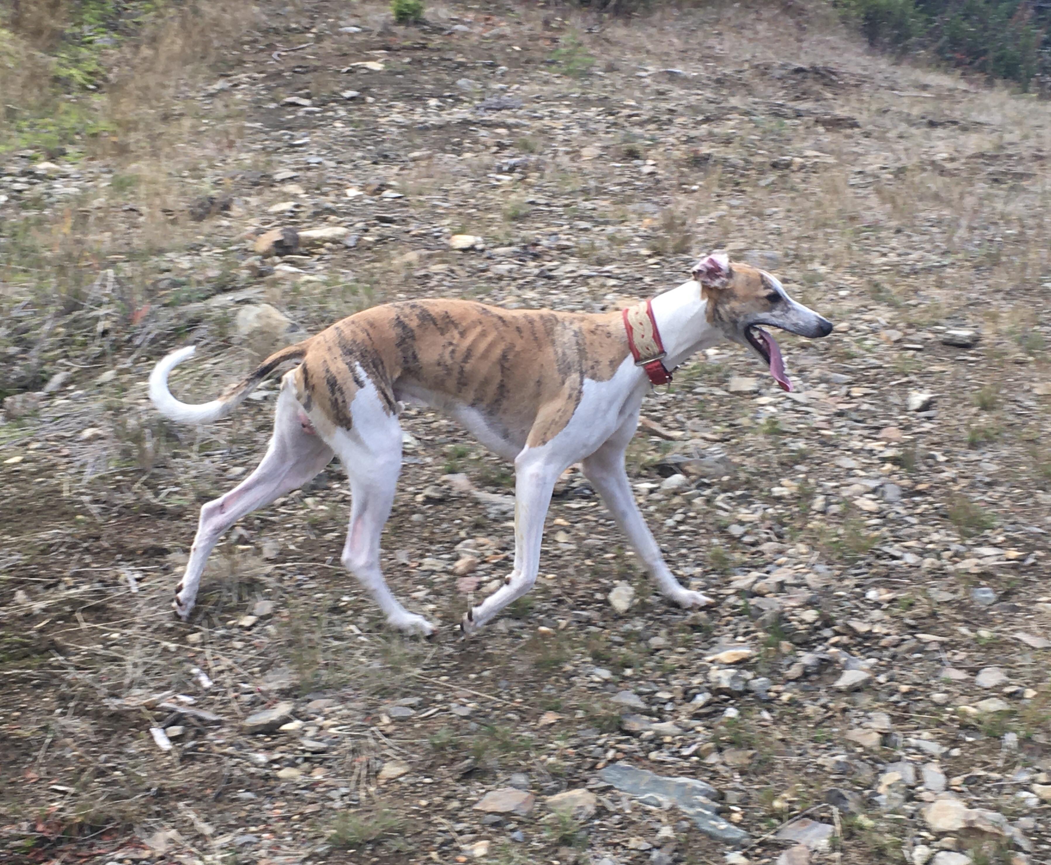 Zuma is a female Whippet over 6 years old. Carefully selected as a great representative of her breed, Darcy decided to make her part of their program. Darcy has passed Good Dog’s screening process, which involved a review of their breeding practices, environment, and the mental and physical health of their dogs.