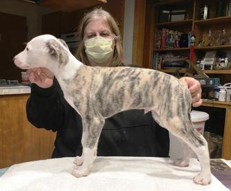 I got my first Whippet in 2001 & fell in love with their sweet nature at home & their fierce determination on the field. I love to watch them run. My Whippets are bred for beauty, brains & speed; I am proud they earned their place in Whippet history. I am constantly working to improve my breeding program. Research, health testing, lifetime responsibility, care & thought go into each pairing.