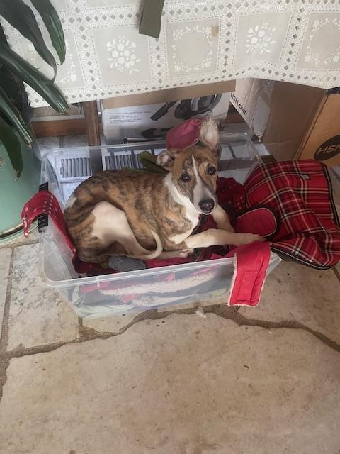 Fox is a female Whippet. Carefully selected as a great representative of her breed, Darcy decided to make her part of their program. Darcy has passed Good Dog’s screening process, which involved a review of their breeding practices, environment, and the mental and physical health of their dogs.