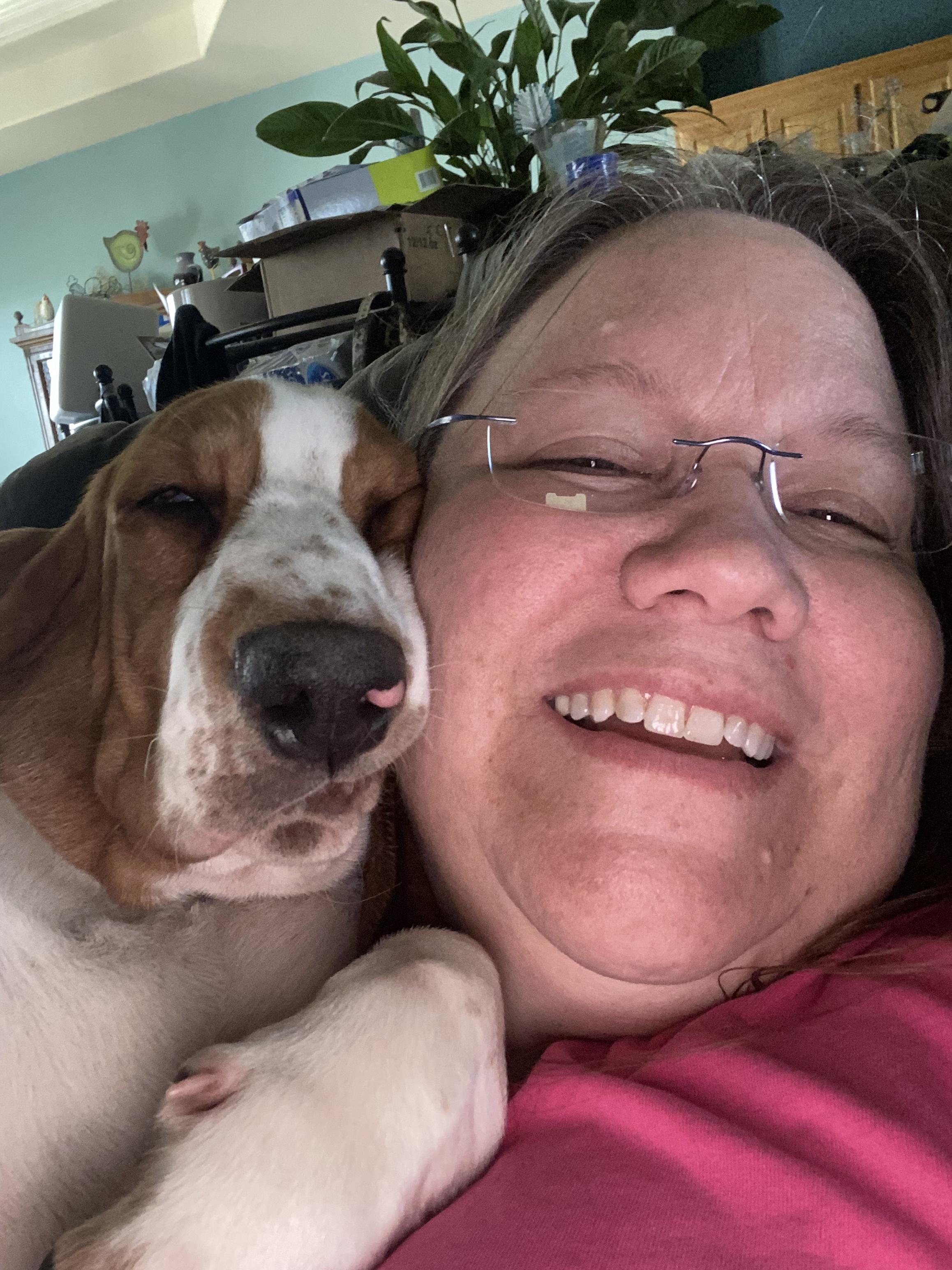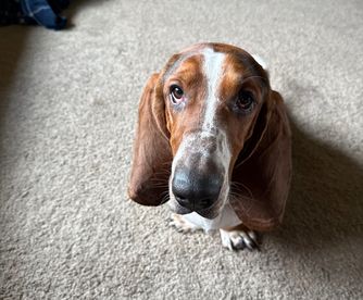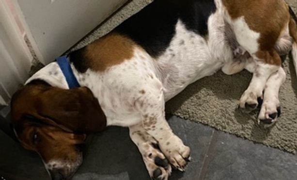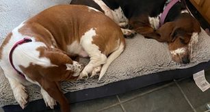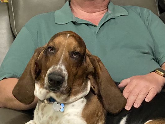 Tri-colored Euro-American Basset Hound, born July 2020. She averages 49 lbs. in weight. She has the traditional velvet ears of her European ancestors, along with the deep bark when she is warding off intruders. Her American heritage gives Blanche her smaller body, relaxed demeanor and sassy walk. Blanche is the queen of the house and a great protector of the family. She loves children and snacks. Her favorite activity is napping in the sun, whether it's in the yard, on the porch, a rug, in her recliner at the window. On weekends, Blanche enjoys her spa day bubble bath, massage and pedicure. She likes helping out in the kitchen, also. Car rides are always a perk. She likes adventures.