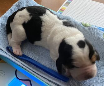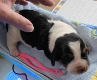Our puppies include black white and brown, mahogany and white, and black brown and white. Colors will vary depending on the parent dogs.
