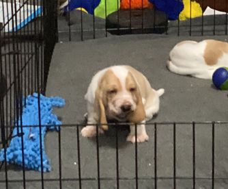 I'm Cynthia B., the breeder behind Buch Bassets located in Marion, TX. Our goal is to grow quality pups that will live a long, healthy life. Puppies received shots and vet exams at 2 week intervals from age 6 weeks. 30 days pet insurance included. Parents onsite, and tested for genetic disorders including: POAG, PCAG, BHT and Lafora, (CDDY with IVDD), DEB, MPS1, SCID.