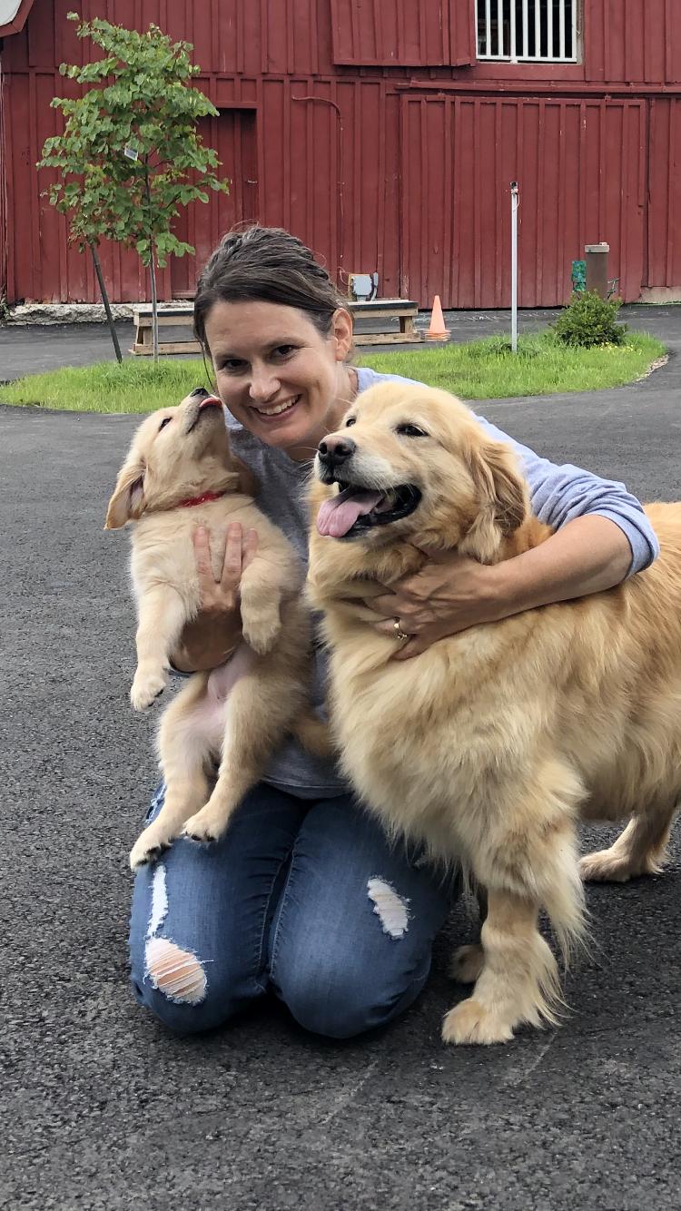 I'm Kelly B., the breeder behind Buck Family Farm Golden Retrievers located in Warsaw, NY. We are improving the Bernese Mountain Dog and Golden Retriever breeds by gaining OFA Hip, Elbow, Heart and, eye clearances. Breed specific genetic panels will produce puppies with the best probability of excellent health. Most importantly we monitor temperament and conformation of each of our Dogs.