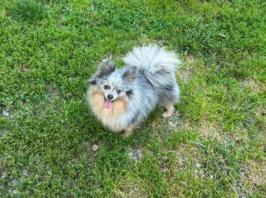 Pixel is a beautiful thick coated bigger girl, her coat is exceptional, she’s got a slightly foxier facial features, she’s very short to the ground with short legs, Blue Merle w/no tan trim, Embark Clear. No Chic/OFA done yet. Not AKC