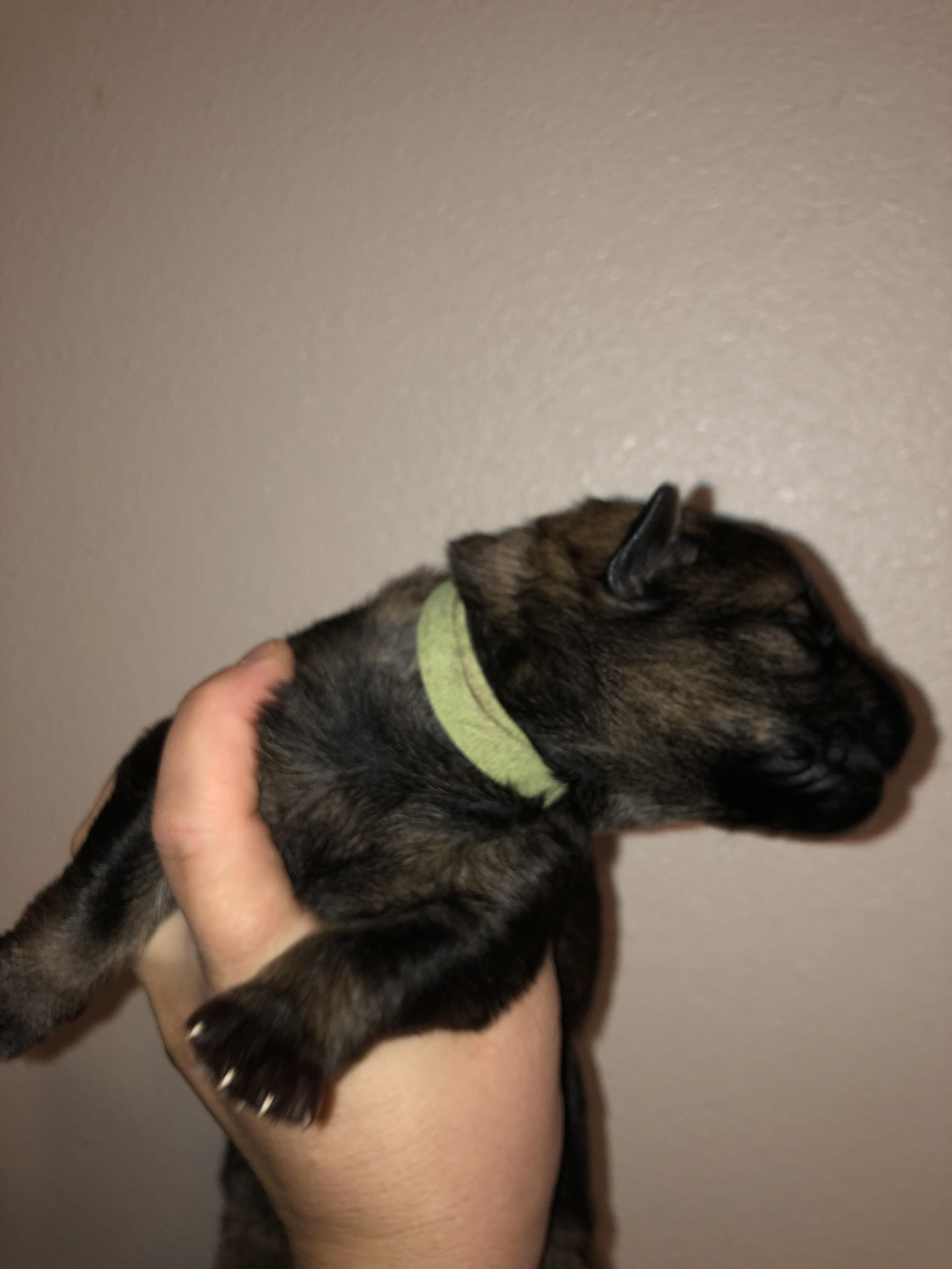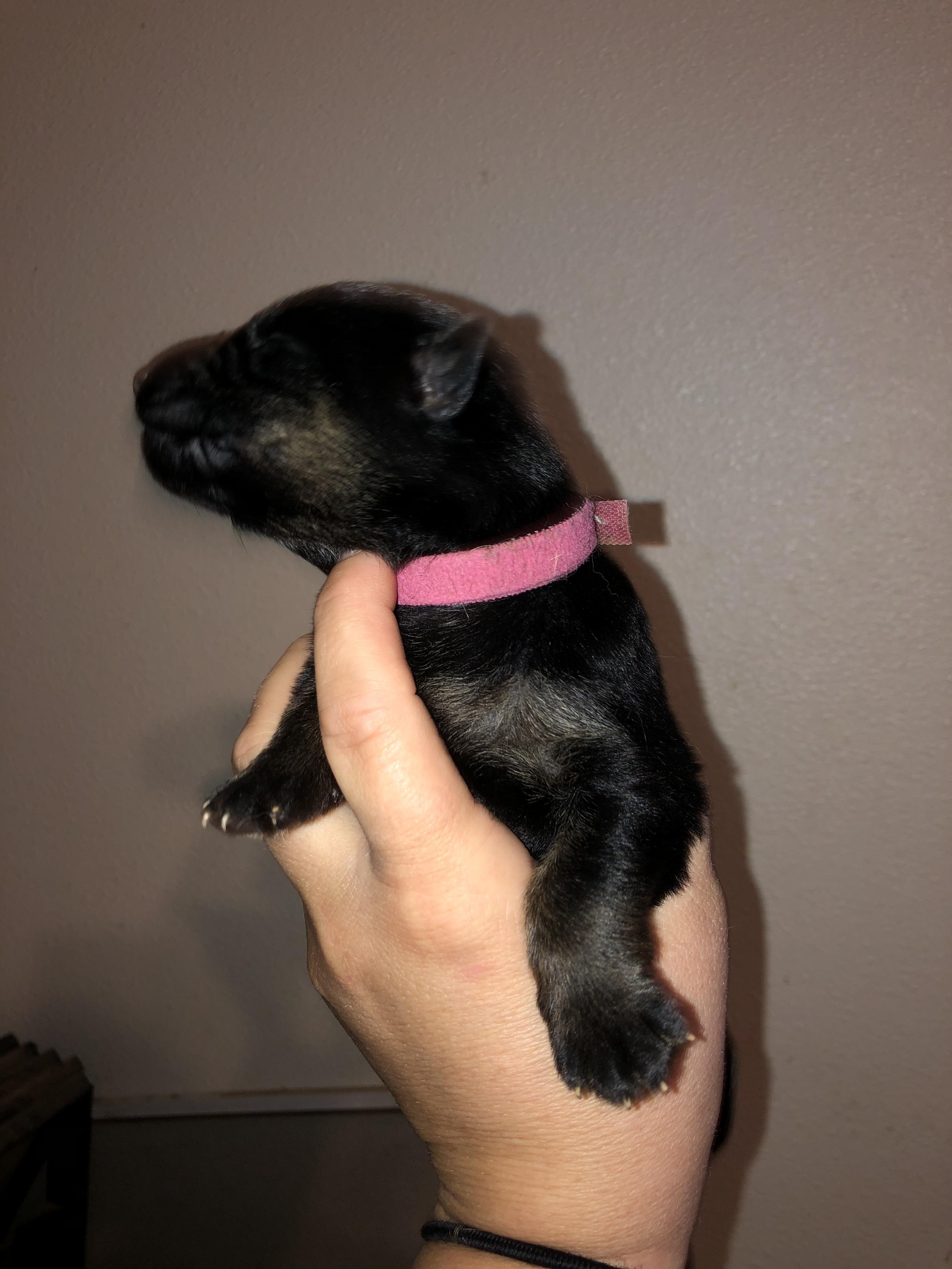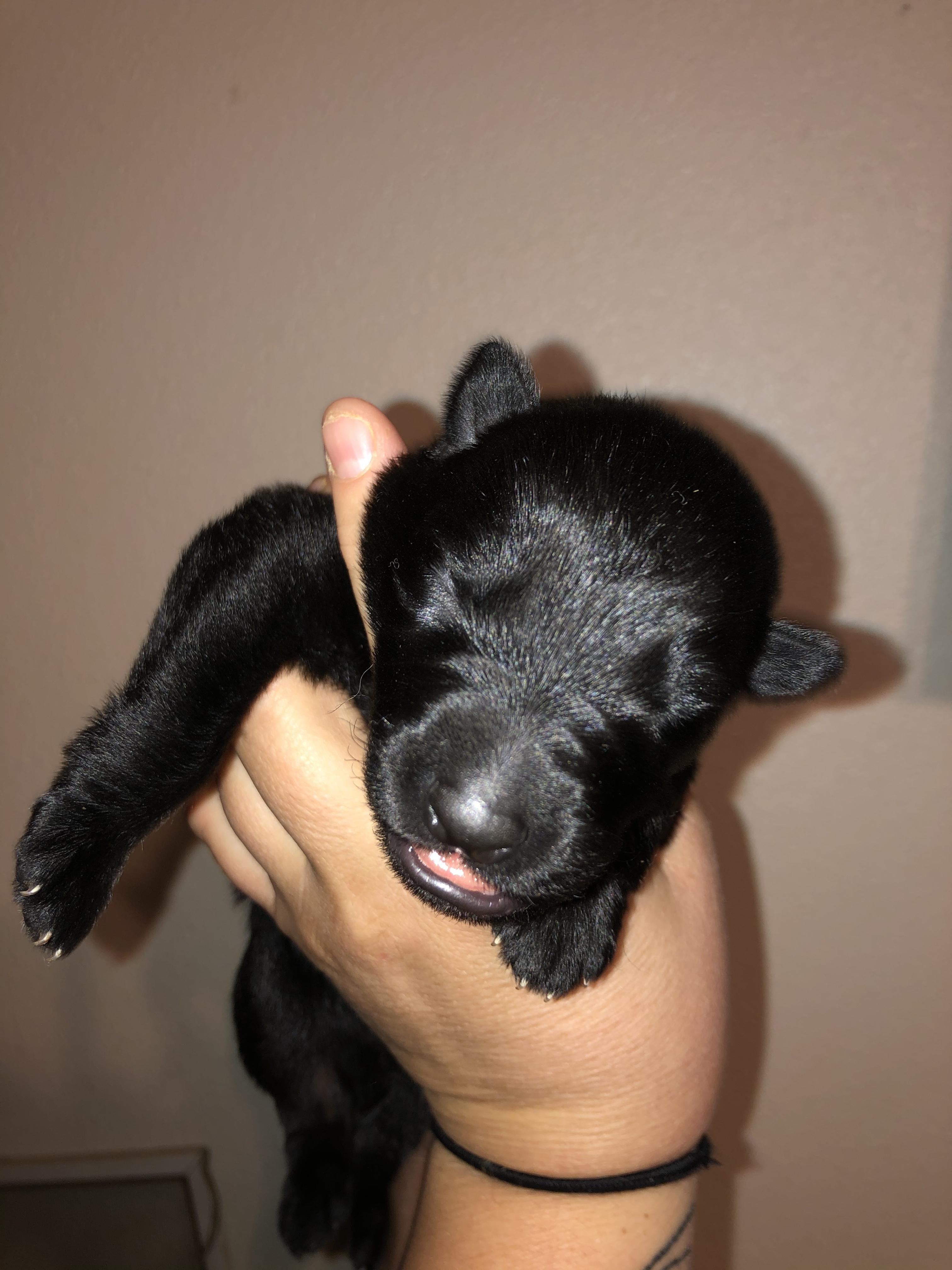 “All of my puppies from the same litter are the same price at 8 weeks. Deposit will hold your spot for that litter. Deposits are non-refundable. 8+ weeks price increases due to training. Deposit is non-refundable and goes towards the total purchase price. I don’t accept deposits until the litter is confirmed via ultrasound.”