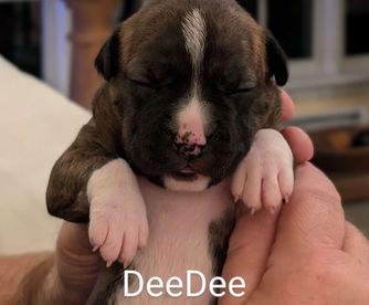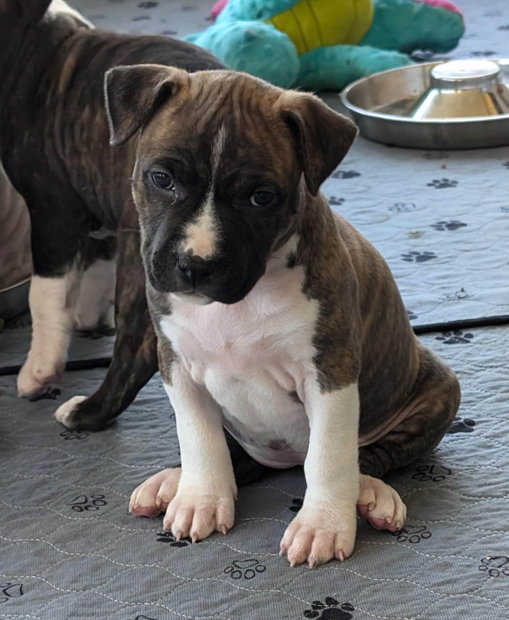 I'm Mary Jo M., the breeder behind Buckeye Amstaffs located in Centerburg, OH. We built our program with care and intention in every step. We care deeply about the health and wellbeing of this breed. It is our goal to produce healthy, show-quality puppies with wonderful temperaments. With this in mind, we consider a variety of factors when making breeding decisions, and we only breed dogs that are exemplary representations of the standard. We provide each of our dogs and puppies with the best care, and we ensure each pup that we don’t keep goes to a responsible, loving home.