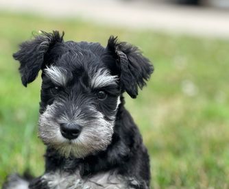 Our puppies include black and silver and salt and pepper. Colors will vary depending on the parent dogs.