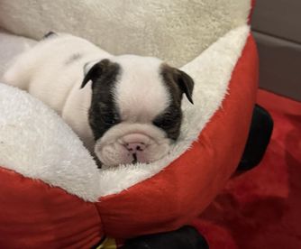 Molly is a female Bulldog. Carefully selected as a great representative of her breed, Mark decided to make her part of their program. Mark has passed Good Dog’s screening process, which involved a review of their breeding practices, environment, and the mental and physical health of their dogs.