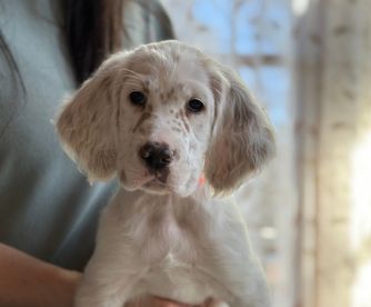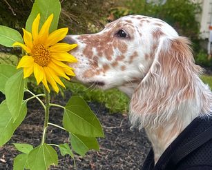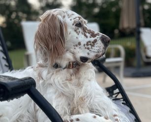 Orange Belton, sweet, playful, attentive, obedient with a side of sass, perfect setter personality traits. LOVES snacks (specifically cheese) and will find any bird in the yard.