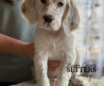 I'm Monique A., the breeder behind Bucks County Setters located in Perkasie, PA. We strive for quality, health, temperament and the overall improvements toward the English Setter Standard. We work very closely with our dam and her pups to ensure they are meeting their milestones daily introducing age appropriate challenges to get their minds and bodies working.