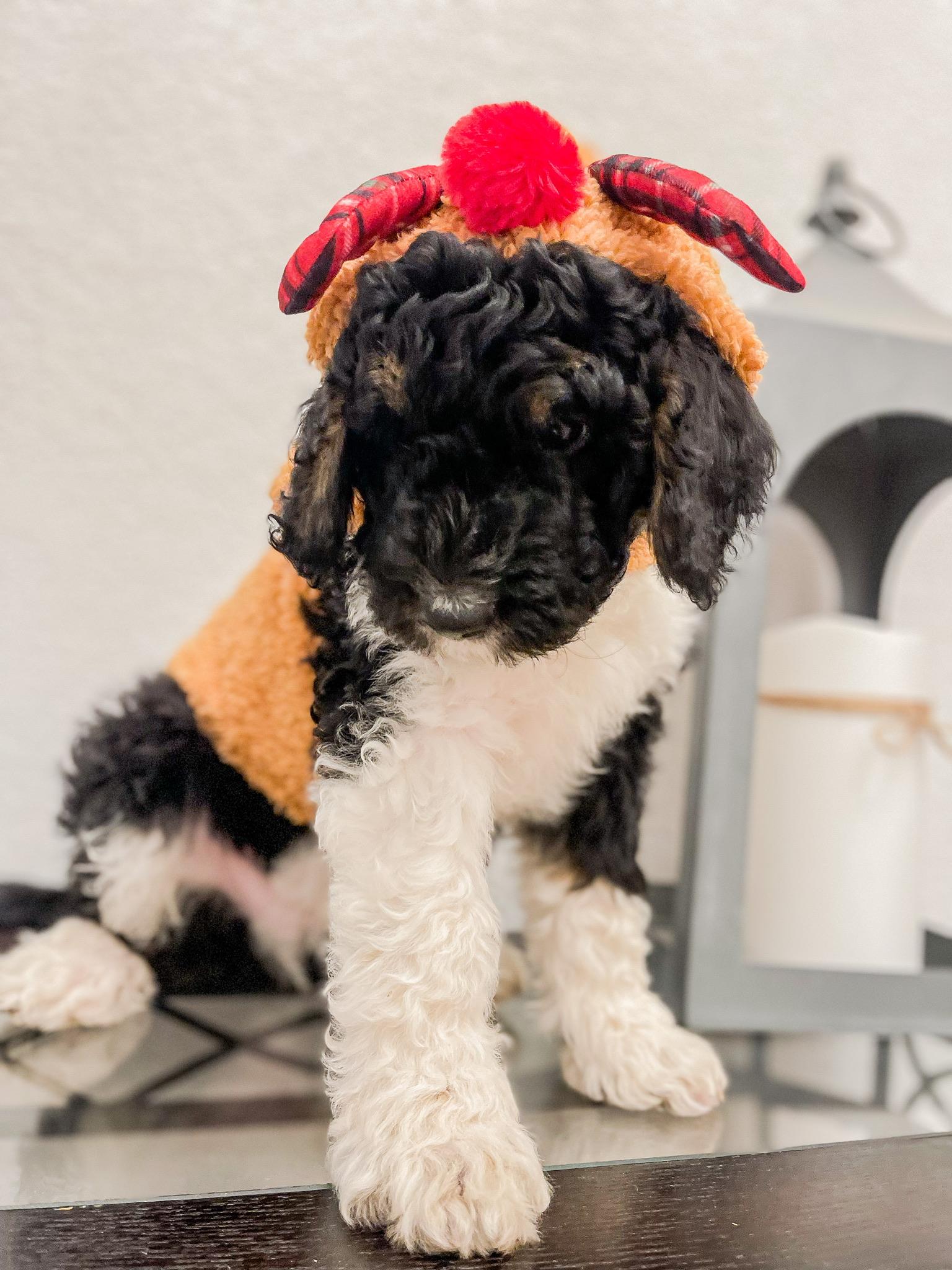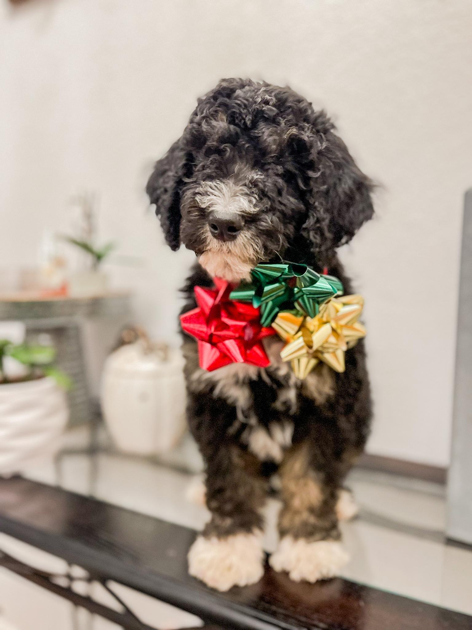 Our Bernedoodle puppies include sable, black and white, tri-color, and phantom. Poodle puppies include brown, parti, and phantom. Colors will vary depending on the parent dogs.