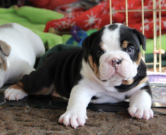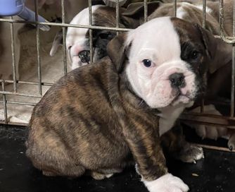 Our puppies include white, red and white, and brindle. Colors will vary depending on the parent dogs.