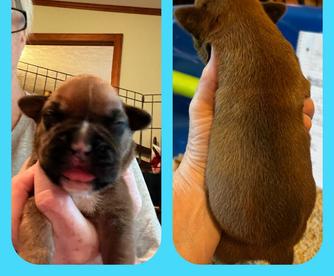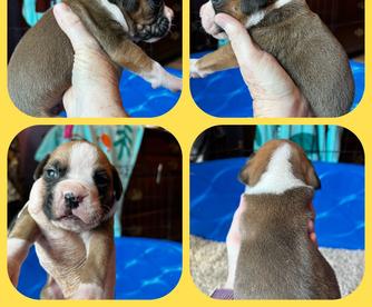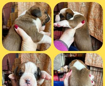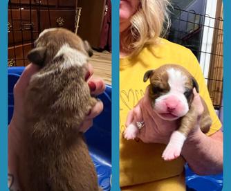 Our puppies include fawn, brindle, and white. Colors will vary depending on the parent dogs.