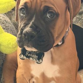Mage is a female Boxer. Carefully selected as a great representative of her breed, Kelly decided to make her part of their program. Kelly has passed Good Dog’s screening process, which involved a review of their breeding practices, environment, and the mental and physical health of their dogs.