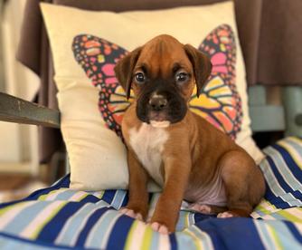 I'm Kelly E., the breeder behind Buffalo Creek Boxers located in Evington, VA. We’re proud of the healthy, affectionate, and behaviorally well-rounded puppies we raise for other families to love! The loyalty and loving disposition of this breed are simply the best! We put a great deal of effort into raising our litters to ensure our puppy families will have the best experience raising their new family members.