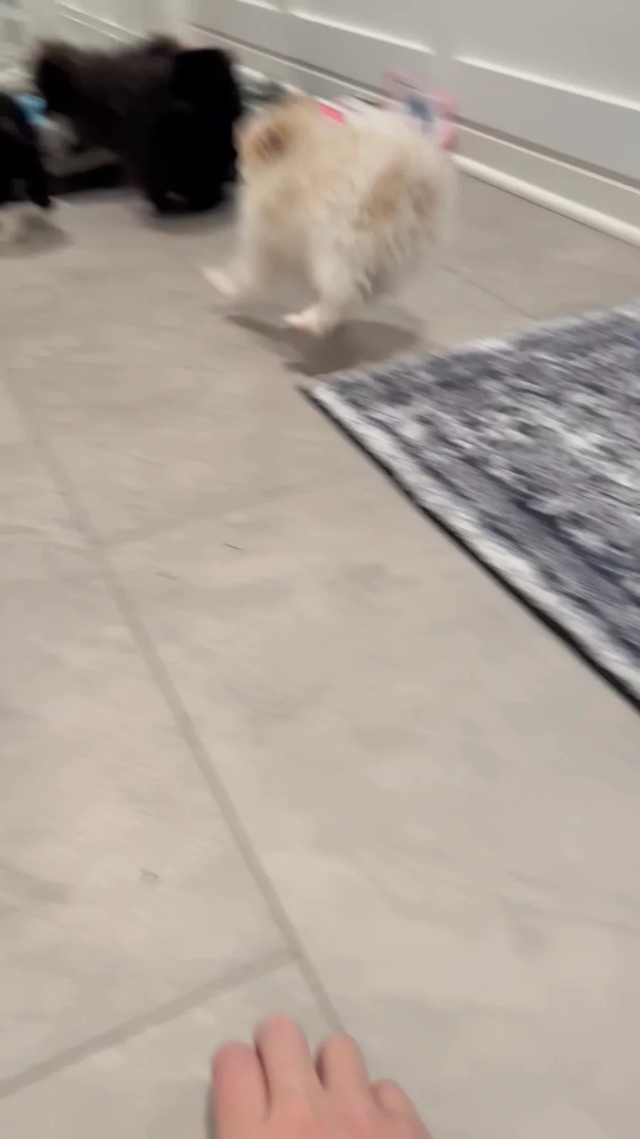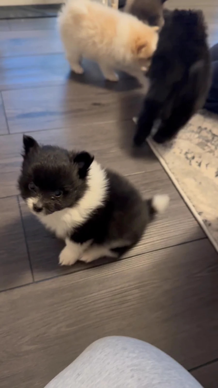 Puppies are just 1 day away from being 6-weeks! They’re weaning off of mom wonderfully as they transition from their milk and soft canned puppy food to a more solid/soft mixture of food. They’re still with mom several times for feedings and playing throughout the day! They’re playful, oh so playful!! If they see a familiar face they’re eager to greet that person or pet and will make it known to break them out of the puppy area. A couple have gotten down the Pomeranian two legged stance where they stand up on their back feet and balance while they wait for a treat or affection! It’s the cutest. Mom can balance for quite a while haha. They’re also doing wonderful to look for a pad when needing to potty. They will not go on their soft bed which is nice for us but also for learning purposes- knowing not to potty where you sleep is key!