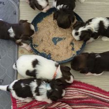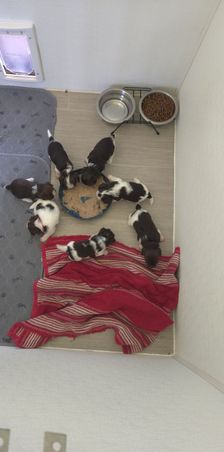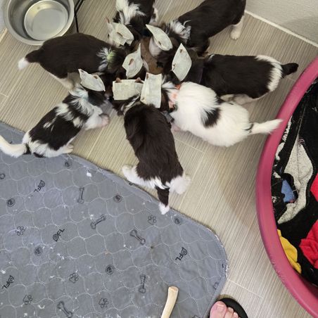 Seven healthy puppies!! 6 are available. They are moving around and developing as expected.