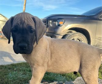 I'm Jake W., the breeder behind Bull West Kennels located in Indianola, IA. It's our goal to produce adorable, affectionate Great Dane puppies that are healthy, well-tempered, and make wonderful companions. We are dedicated to always providing our buyers and our puppies with a positive experience, which includes remaining committed to responsible practices when it comes to breeding, training, and rehoming our puppies.