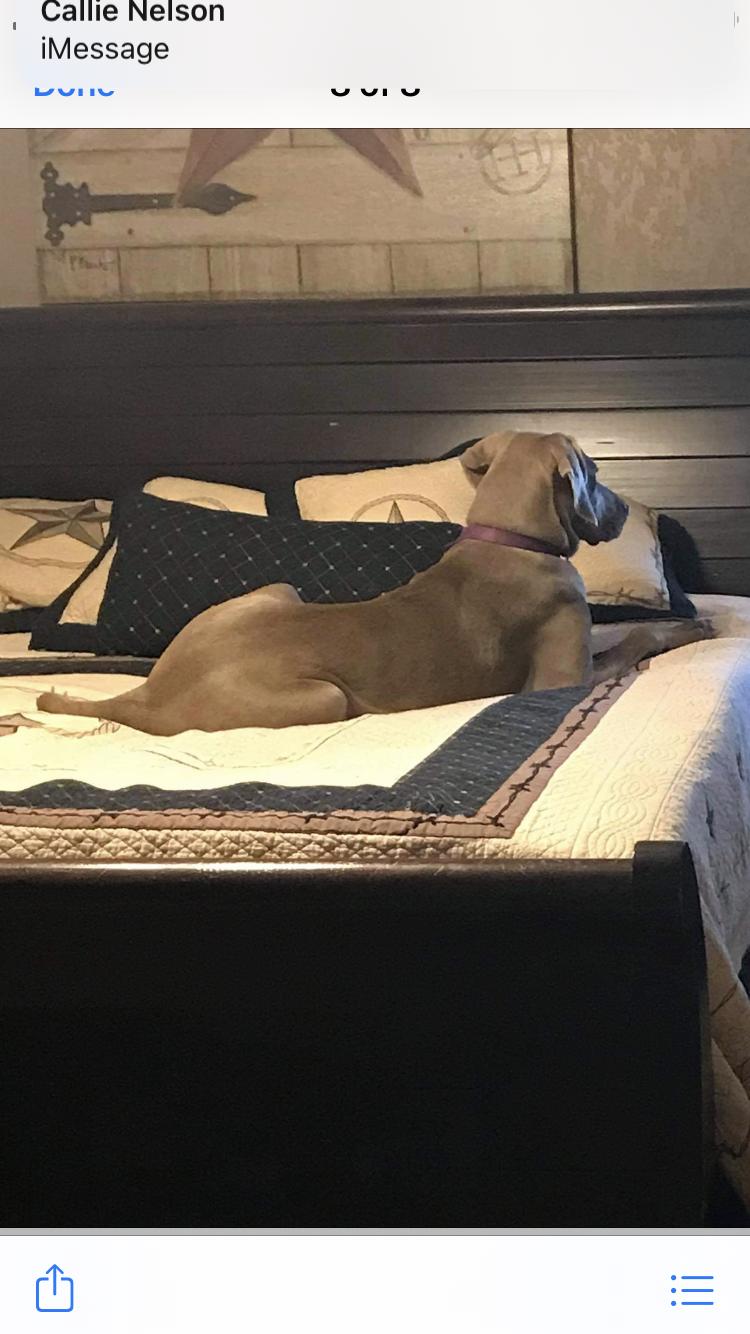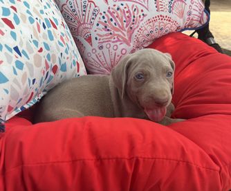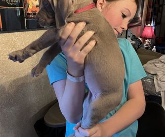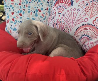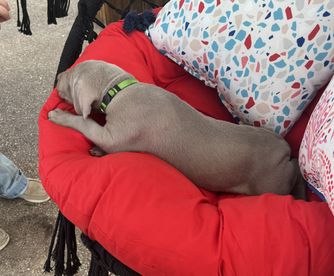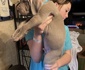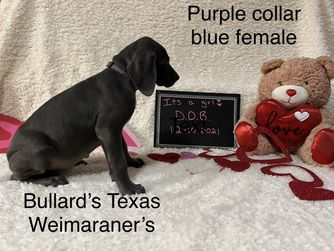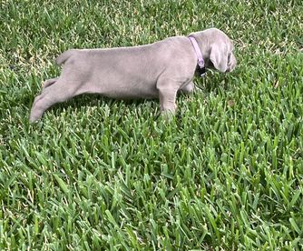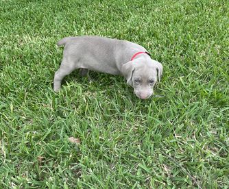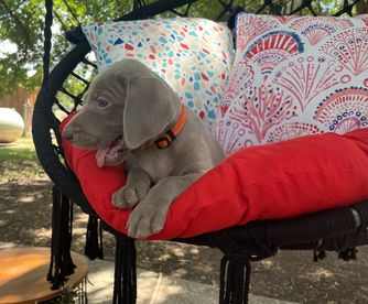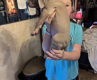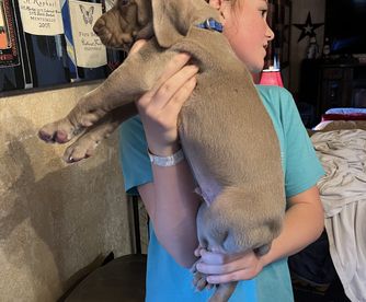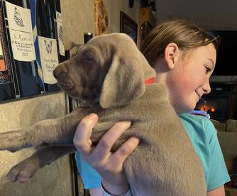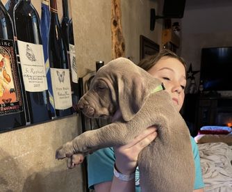 I'm Destiny B., the breeder behind Bullard’s Weimaraners located in Lone Camp, TX. In order to start our puppies off on the right paw, we begin training and socializing at a young age so they are set up for success in their new homes. We prioritize the health and well-being of each one of our puppies and follow all appropriate puppy health protocols.