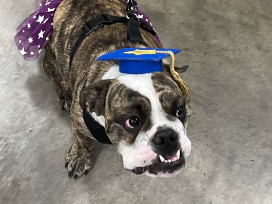 Gamera is a female Bulldog about 2 years old. Carefully selected as a great representative of her breed, Emi decided to make her part of their program. Emi has passed Good Dog’s screening process, which involved a review of their breeding practices, environment, and the mental and physical health of their dogs.