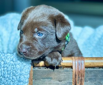 Our puppies are chocolate. Colors will vary depending on the parent dogs.