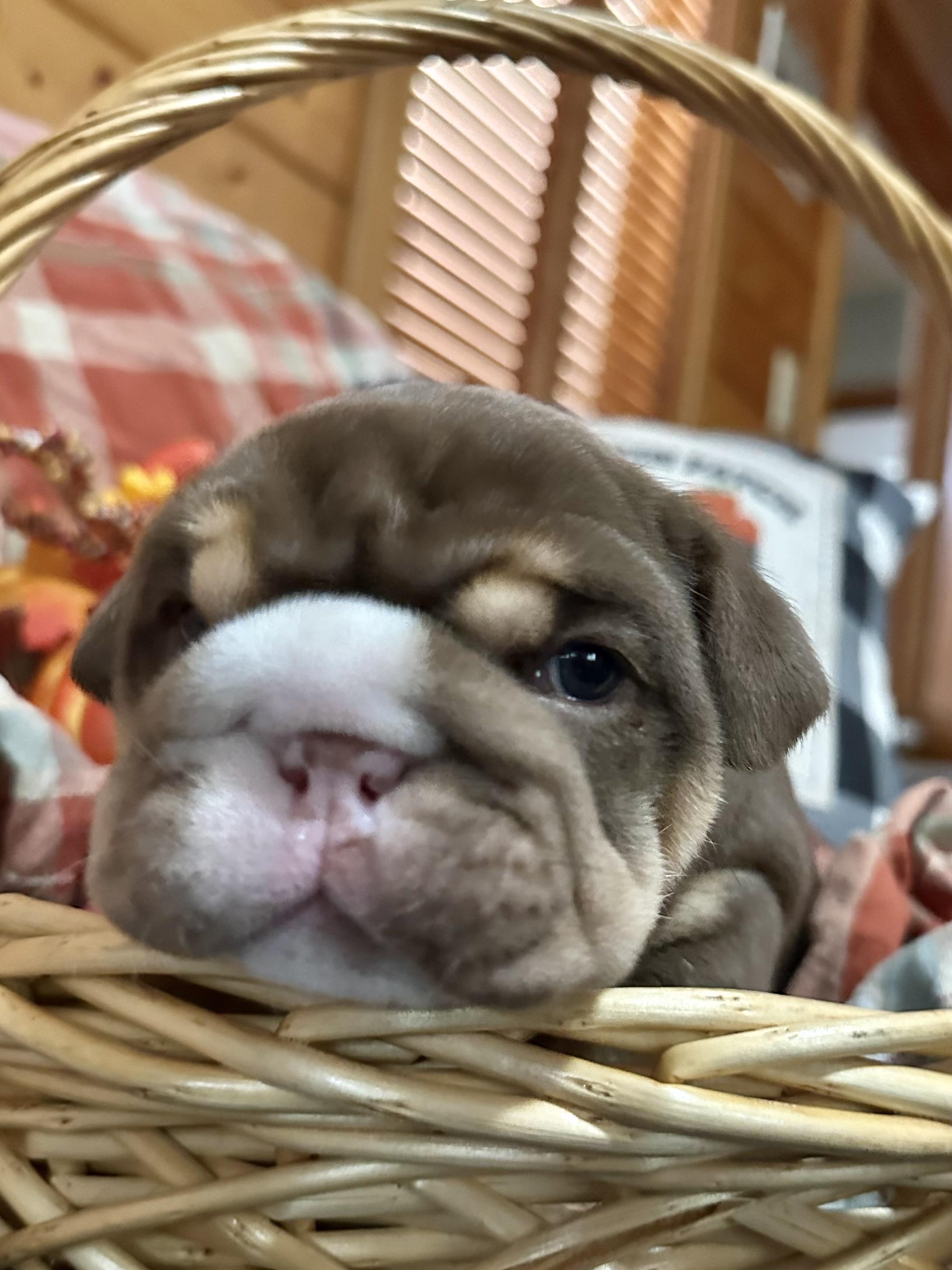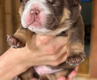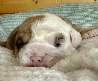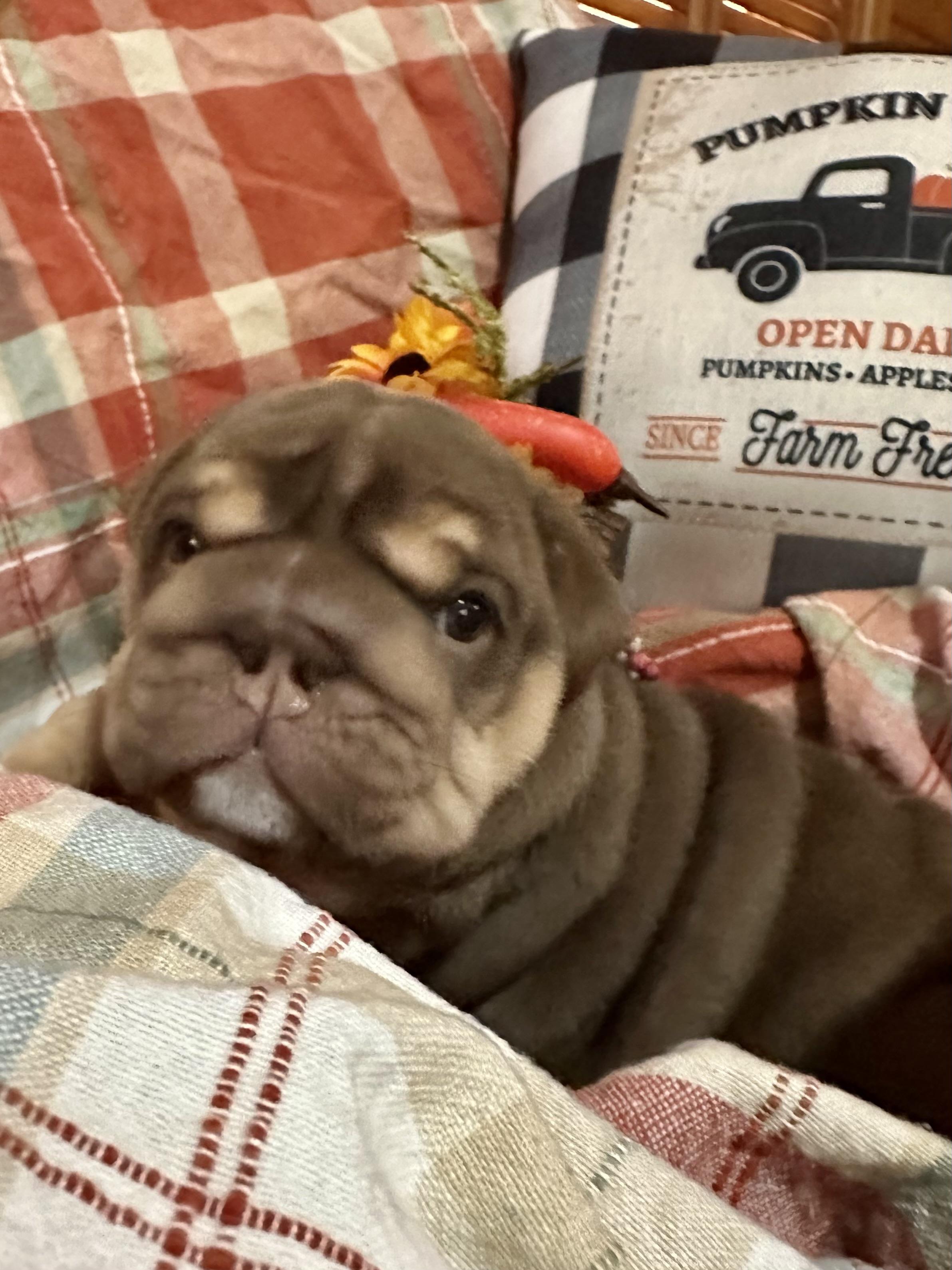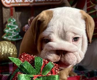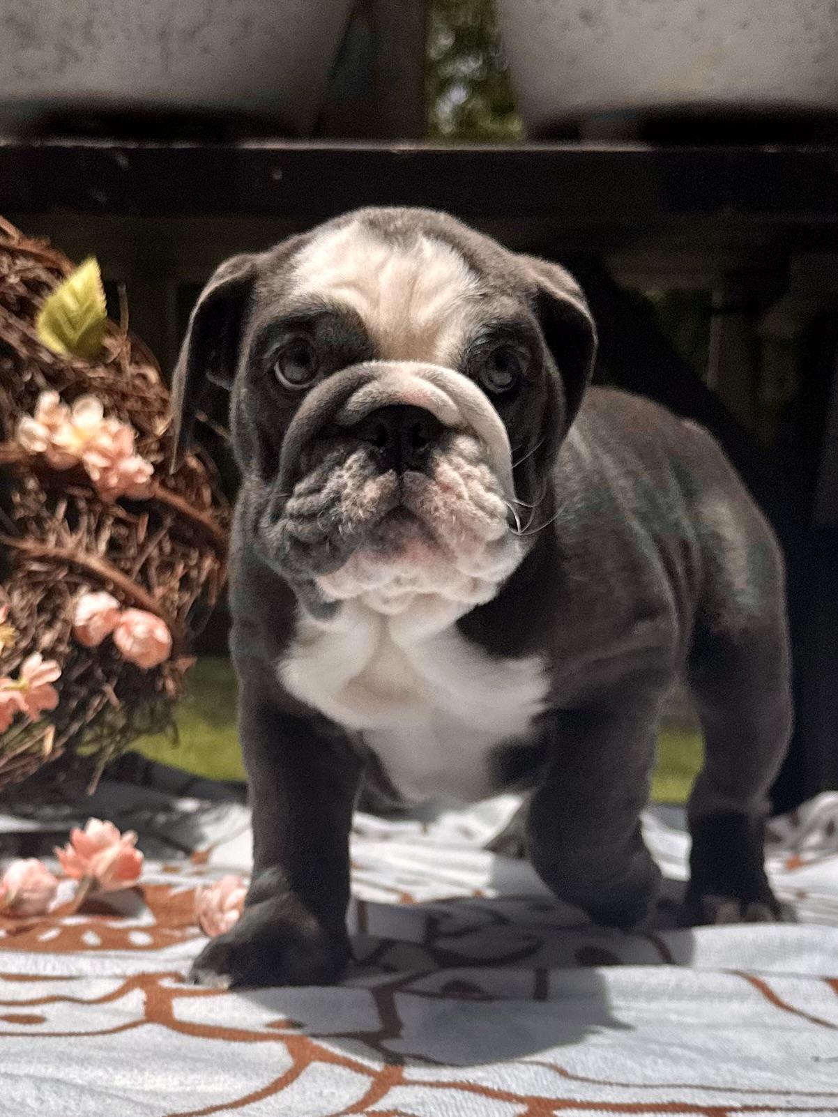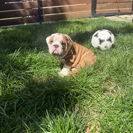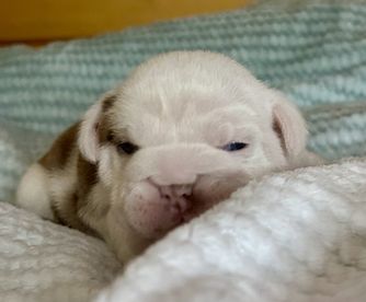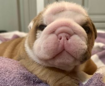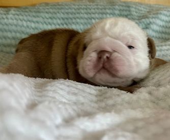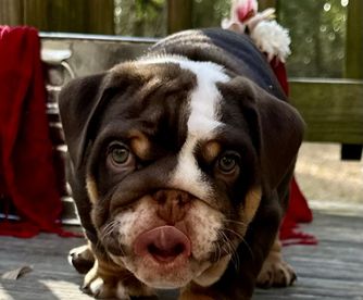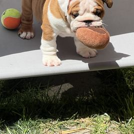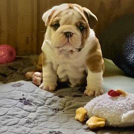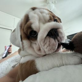 We couldn’t be happier with our experience getting our English Bulldog puppy from Nicole! From the very beginning, she has been incredibly helpful, professional, and thorough throughout the entire process. We shared early on that we planned to name our sweet girl Georgia, and it meant so much to us that Nicole immediately began calling her by name and treating her like part of our family from the start. Nicole kept us updated with weekly photos and detailed updates on Georgia and her littermates, which made the wait so exciting. She even went the extra mile by doing an adorable photoshoot with the puppies — we looked forward to those pictures every week! At 6 weeks old, Nicole welcomed my husband and I into her home to meet Georgia in person. It was clear how much love and care she puts into raising her puppies. When it was finally time to bring Georgia home, Nicole sent us off with the most thoughtful “puppy welcome home” bag, filled with essentials like toys, puppy shampoo, wipes, pee pads, and so much more. She also included a super helpful letter full of English Bulldog care tips and even recommendations for cleaning products — truly thinking of everything to set us and Georgia up for success. Nicole has gone above and beyond to make this an easy, exciting, and joyful experience. We are so grateful to her for giving us the most lovable, friendly, and fun little Bulldog. We would absolutely recommend Nicole to anyone looking to add an English Bulldog to their family — she is truly a breeder who cares!